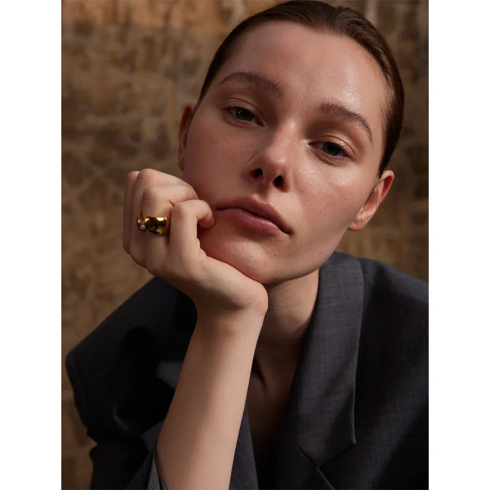 Elvira Wide Ring – 18K Gold Plated Modern Elegant CZ Jewelry | Huna Jewelry
