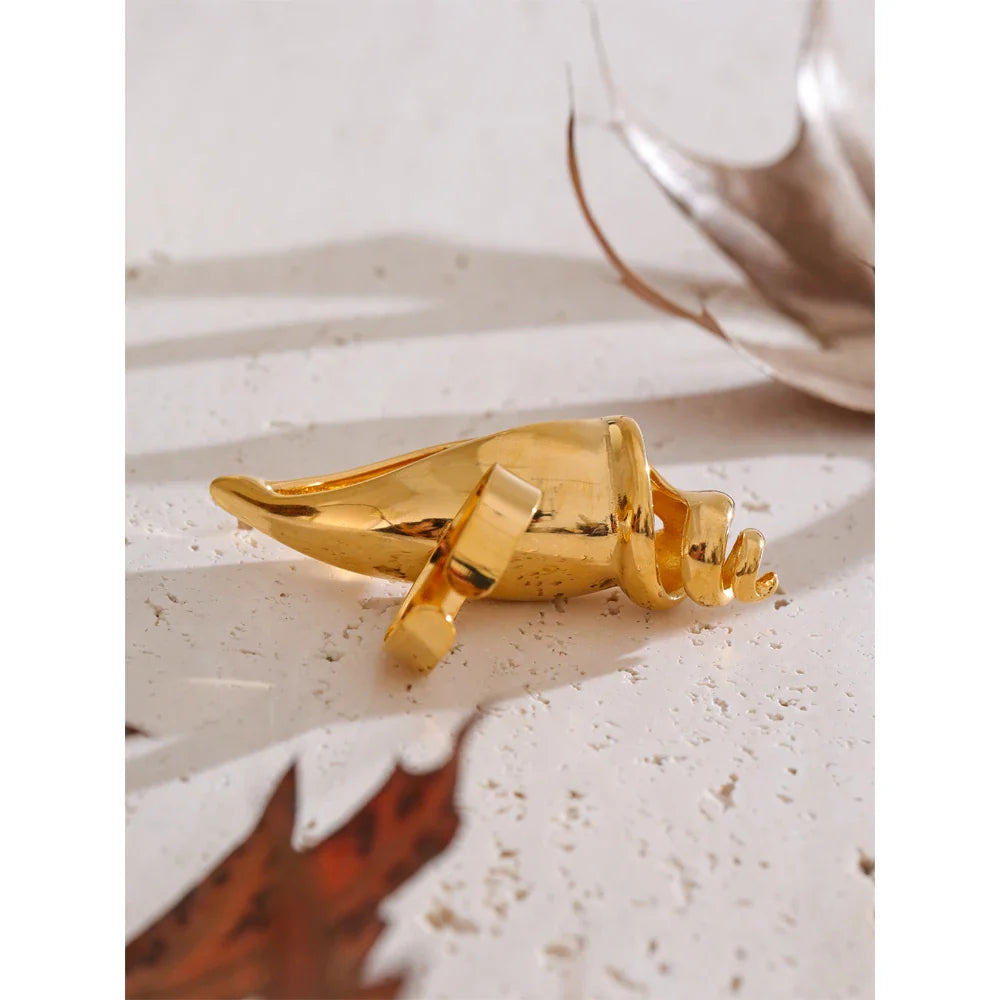 Inara Conch Open Cuff Ring – 18K Gold Plated Statement Jewelry | Huna Jewelry