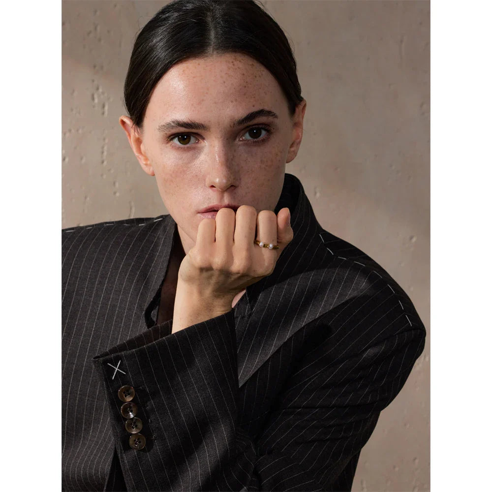The Kate Beaded Triangle & Pearl Ring from Huna Jewelry is a delicate yet stylish piece designed for effortless elegance. Featuring a unique elastic front with alternating triangle beads and freshwater pearls, this ring offers a comfortable, flexible fit for all-day wear. Crafted from premium stainless steel with 18K PVD gold plating, it is water-resistant, tarnish-free, and designed to last. Perfect for layering or wearing alone, this modern and trendy ring is a must-have addition to your jewelry collection.