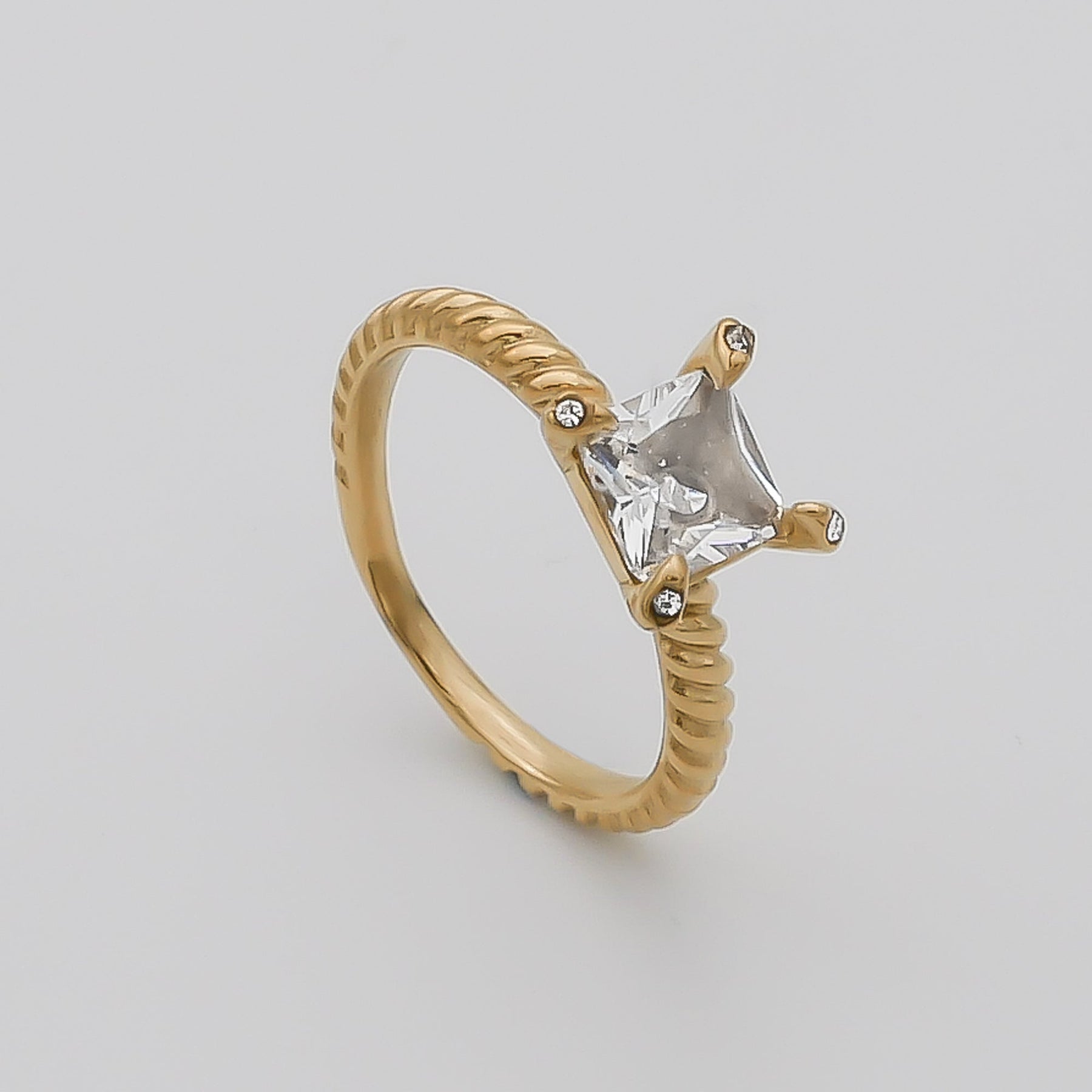 Mia Gemstone Ring – 18K Gold-Plated Twisted Band with Cubic Zirconia | Huna Jewelry