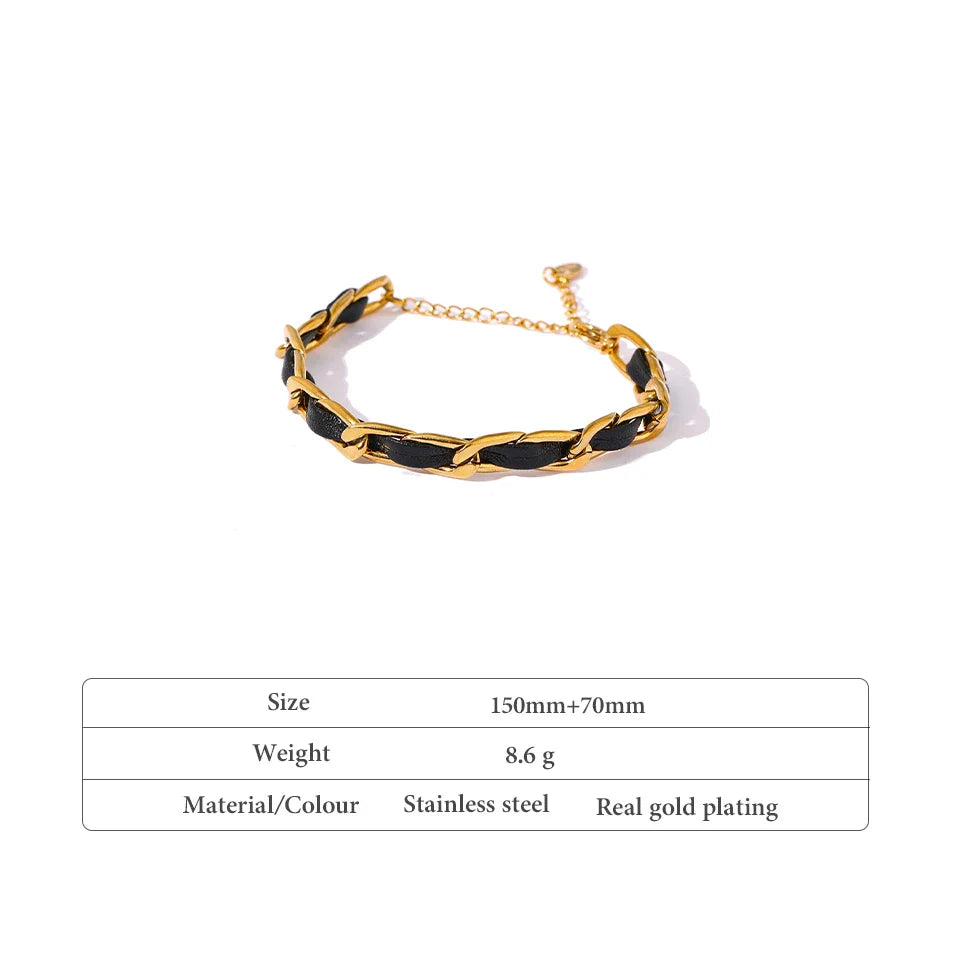 Anwen Black Leather Chain Bracelet – Trendy & Unisex Jewelry | Huna Jewelry