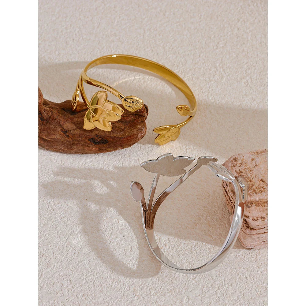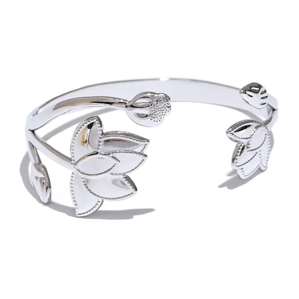 Caroline Flower Cuff Bracelet – Stainless Steel Tarnish-Resistant Bangle | Huna Jewelry