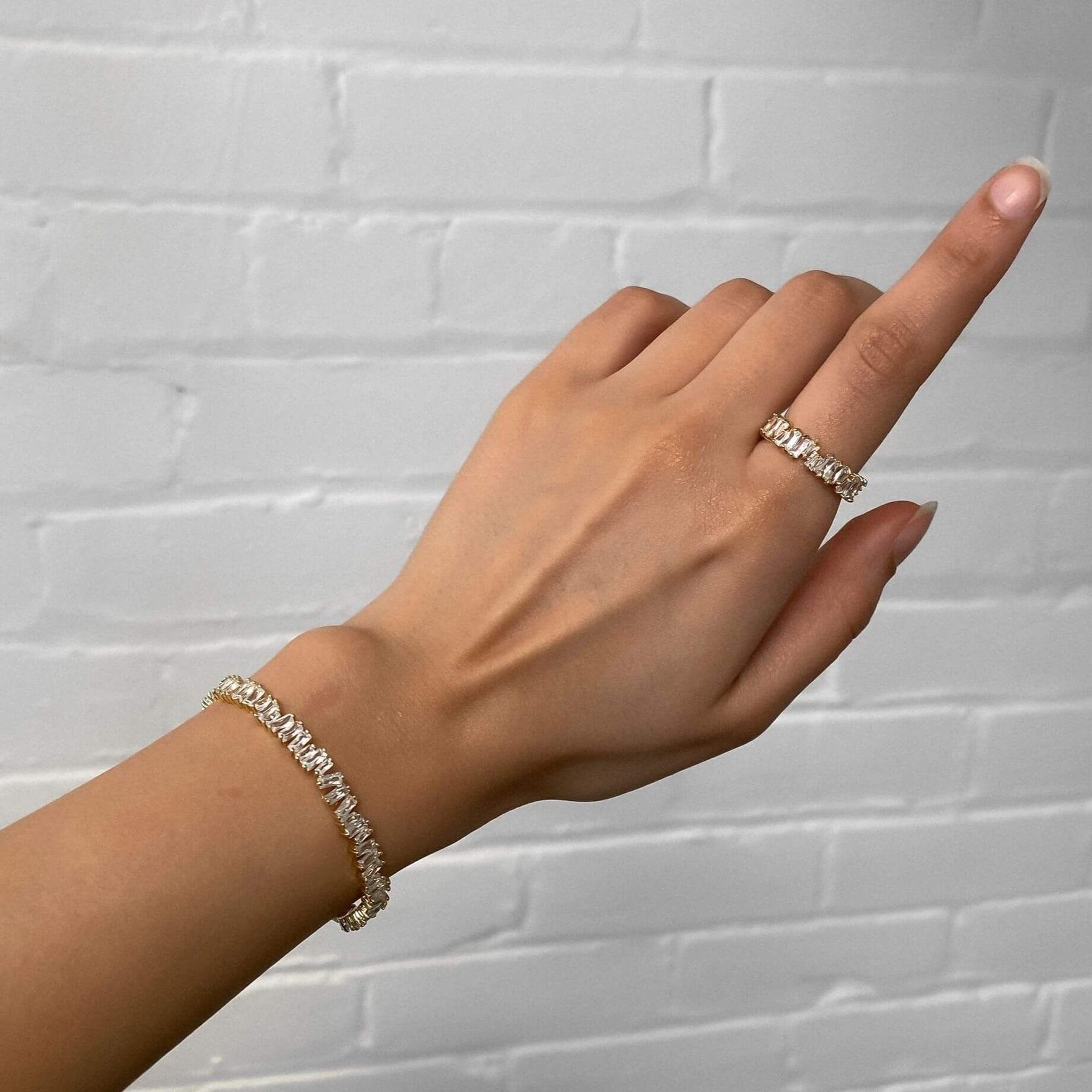 Huda Baguette CZ Bracelet – Gold-Plated Adjustable Design | Huna Jewelry