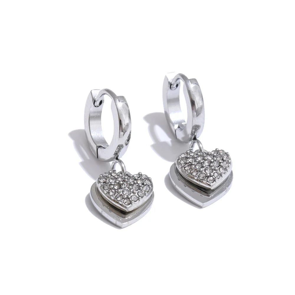 Charlie Heart Drop Hoop Earrings – Romantic & Hypoallergenic Design | Huna Jewelry