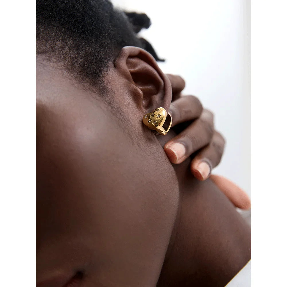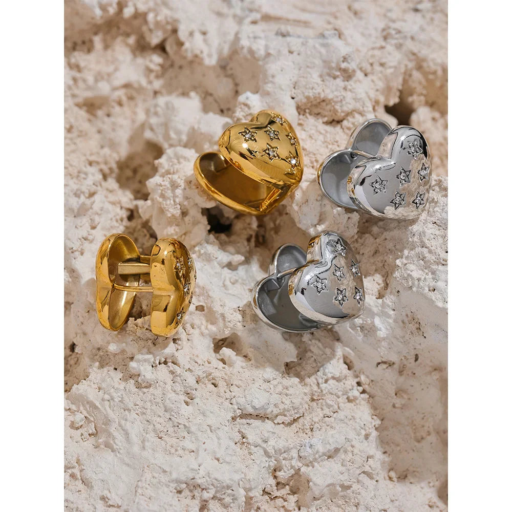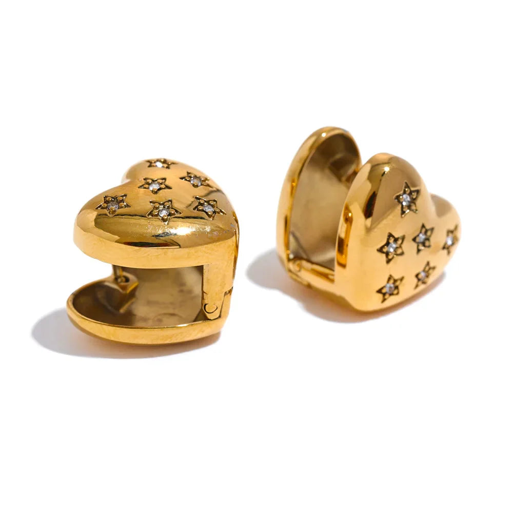 Claudia Heart Huggie Earrings – CZ Star-Studded & Elegant | Huna Jewelry
