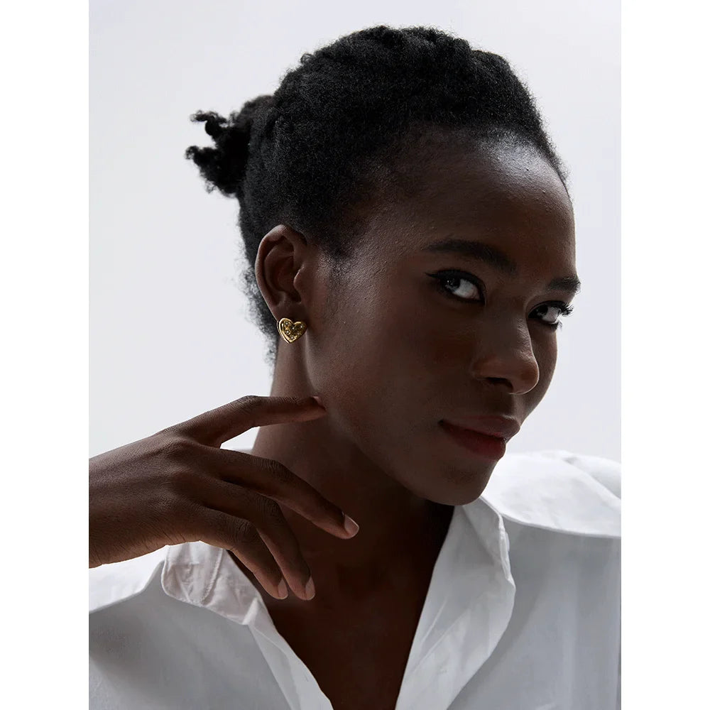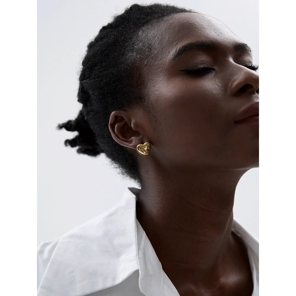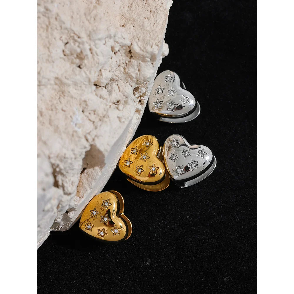 Add a touch of romance and sparkle to your jewelry collection with the Claudia Heart Huggie Earrings from Huna Jewelry. These delicate huggie hoop earrings feature a heart design, beautifully adorned with shimmering cubic zirconia stone stars for a radiant finish. Made from high-quality stainless steel with real PVD gold plating, they are waterproof, tarnish-resistant, and perfect for everyday wear. Whether you're dressing up for a special occasion or elevating your daily look, these earrings bring timeless elegance to any outfit.