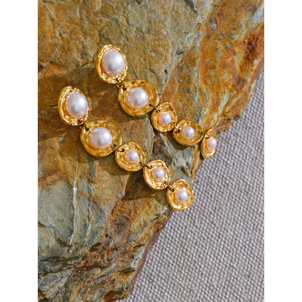 • Design: Graduated hammered circles with pearl inlays, linked in a vertical drop