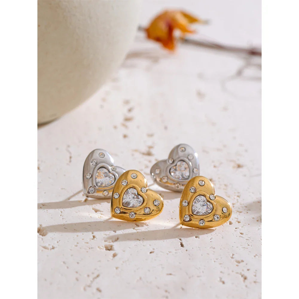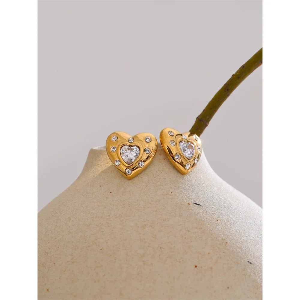 Chiara Heart Stud Earrings – Waterproof & Trendy Jewelry | Huna Jewelry