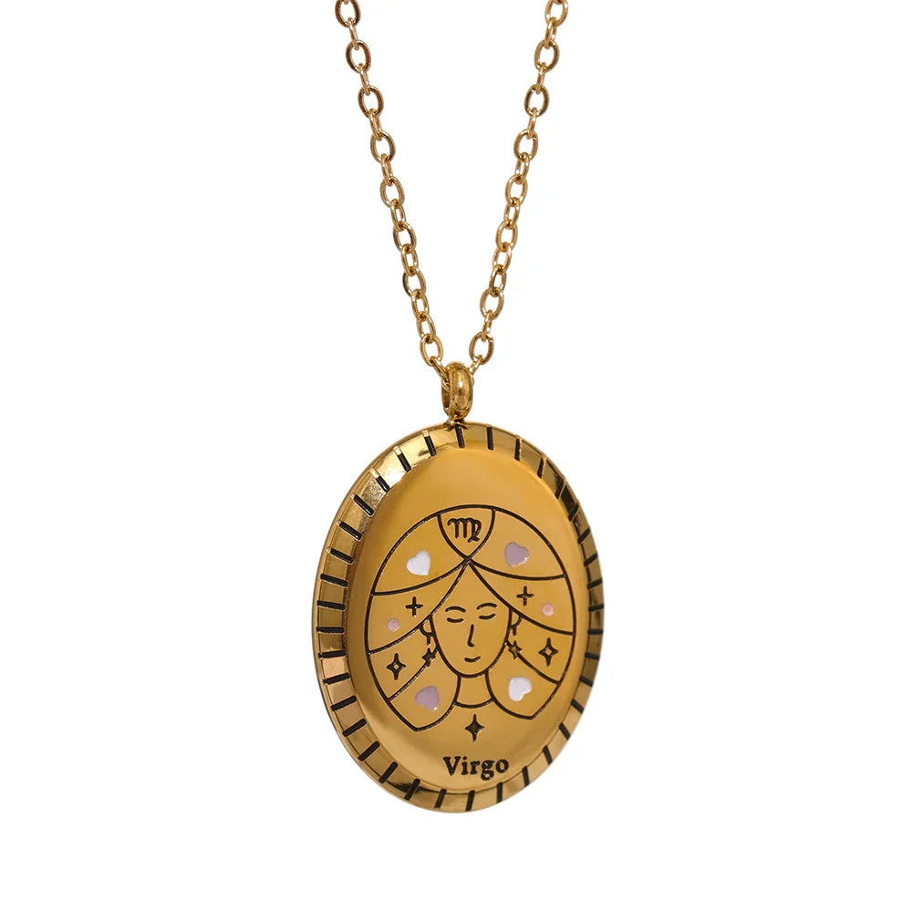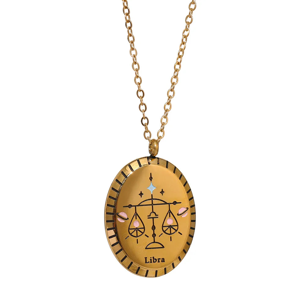 Celebrate your zodiac sign in style with the Stella Constellation Necklace from Huna Jewelry. This elegant oval pendant features a beautifully detailed constellation engraving, symbolizing your unique celestial energy. Crafted from high-quality stainless steel with real gold plating, this necklace offers a timeless, minimalist look while ensuring long-lasting shine and durability. A perfect everyday accessory or a thoughtful gift for astrology lovers.