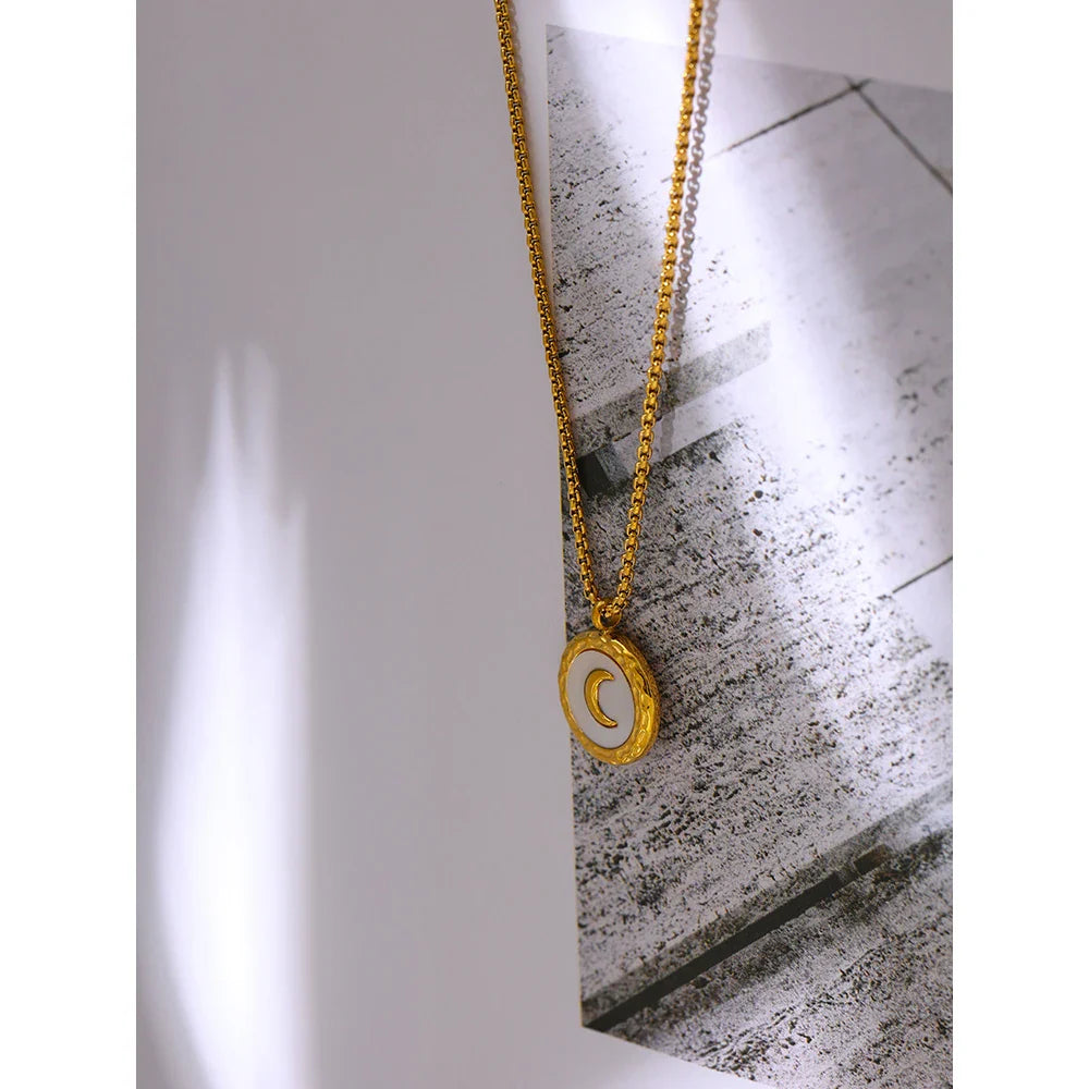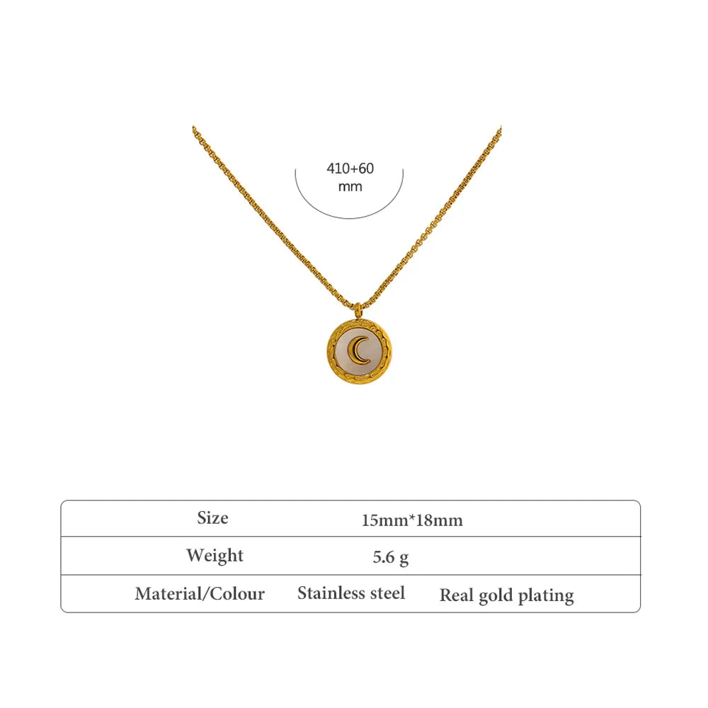 • Elegant Design Crescent moon charm on a round pendant, offering a sophisticated celestial aesthetic.