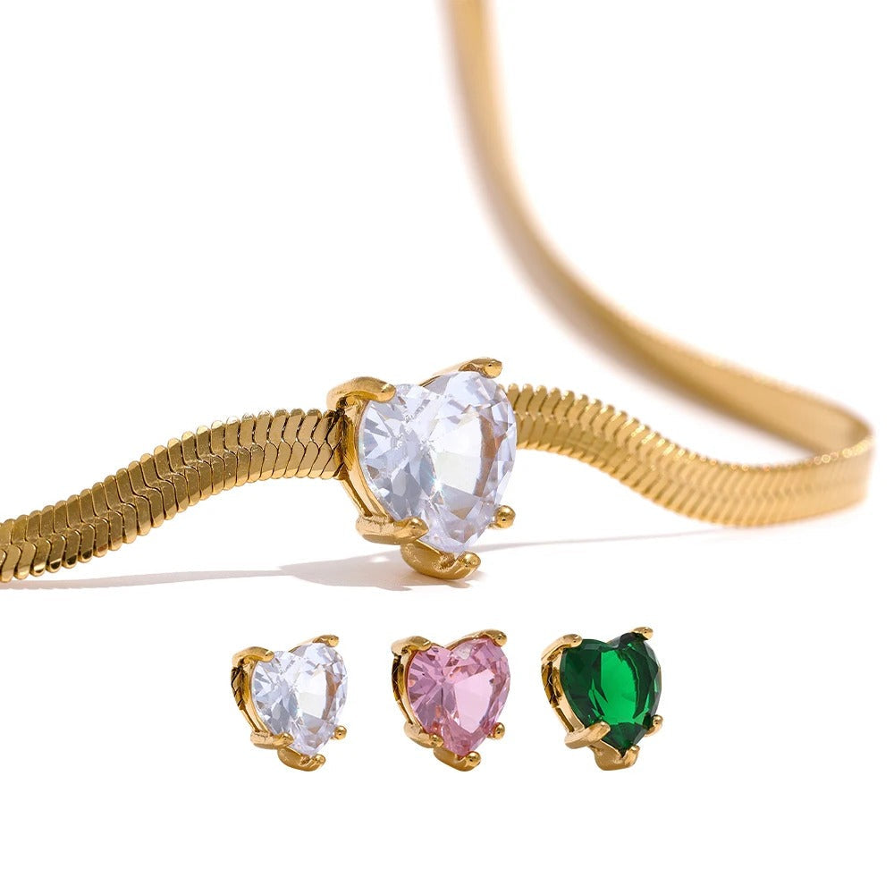 Materials: Zirconia heart charm; PVD gold or platinum-plated stainless steel