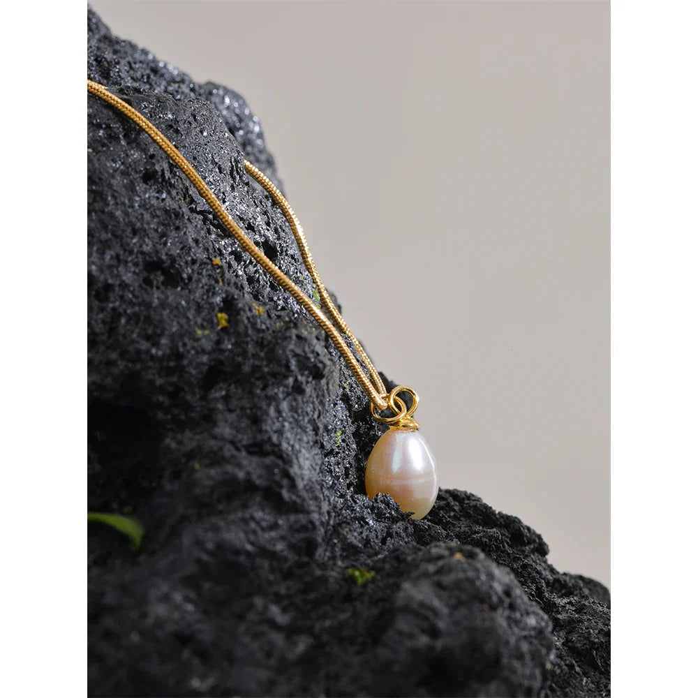 • Design: Thin chain with a natural pearl charm paired with a small gold bead