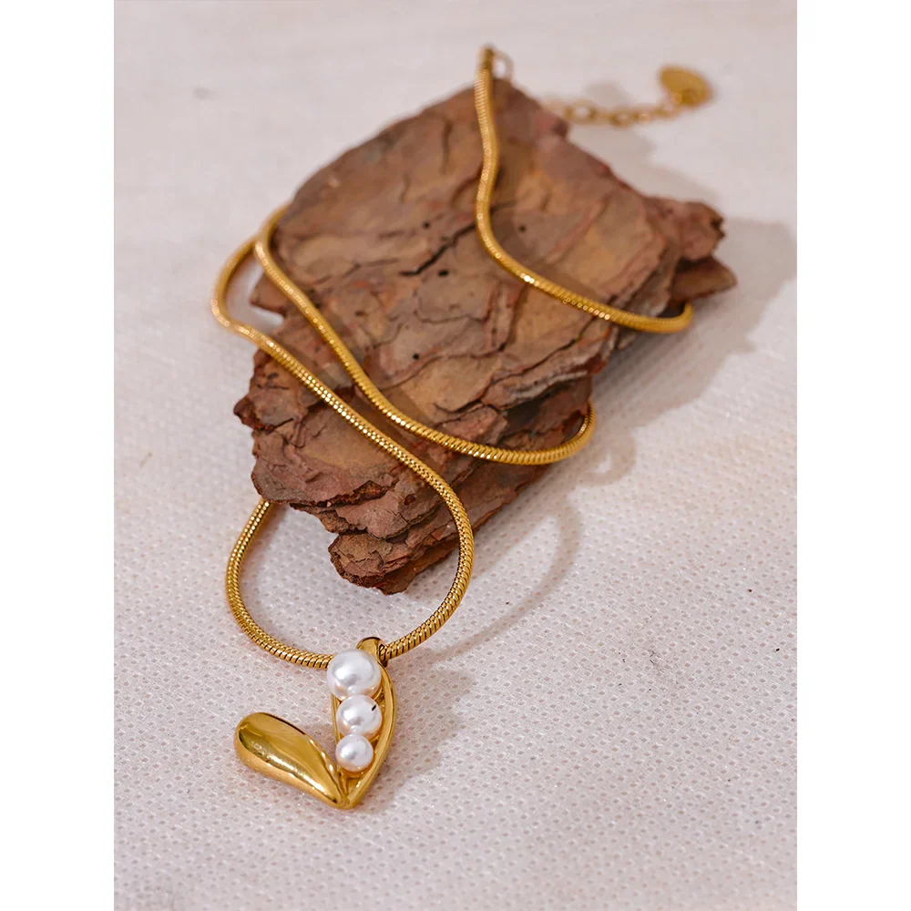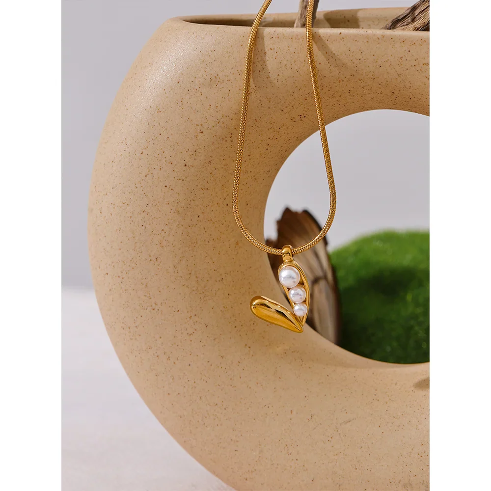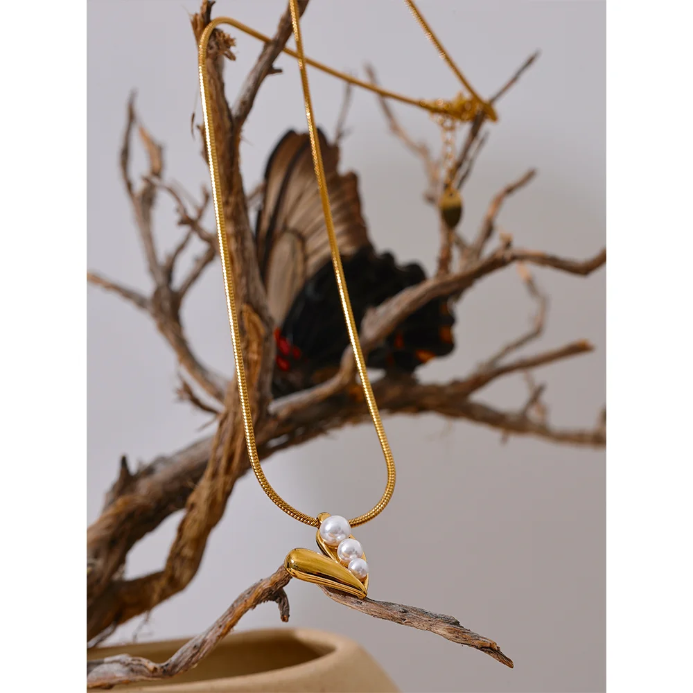 Celebrate love and elegance with the Valentina Pearl Heart Necklace from Huna Jewelry. Featuring a charming heart pendant adorned with three delicate pearls on one side and a sleek gold finish on the other, this necklace is the perfect balance of classic romance and modern minimalism. Crafted from premium stainless steel with PVD gold plating, this durable and water-resistant piece adds a touch of sophistication to any outfit. Whether worn alone or layered, this timeless design makes a thoughtful gift or a stunning addition to your jewelry collection.