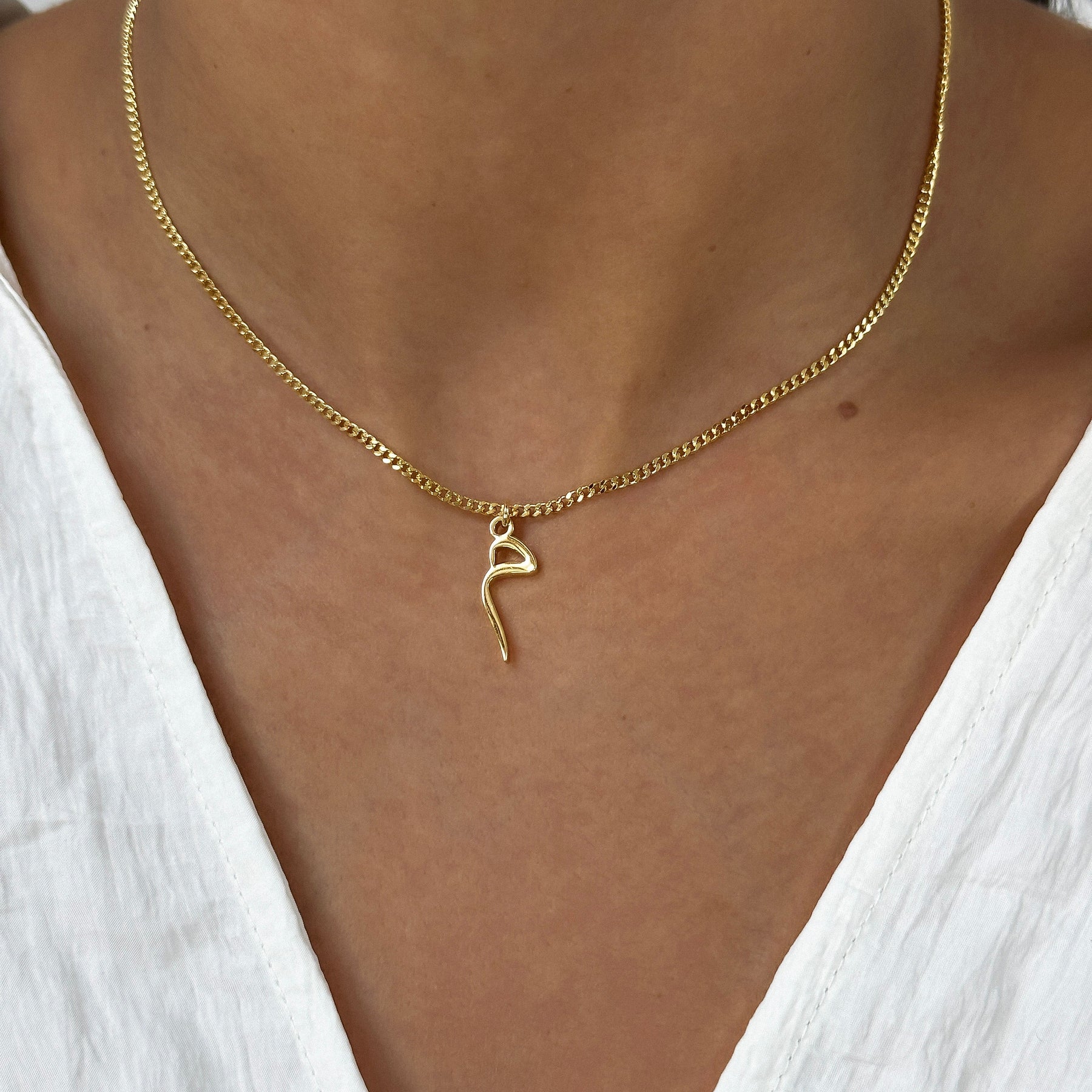 Arabic Initial Necklace – 18K Gold-Plated Custom Pendant | Huna Jewelry