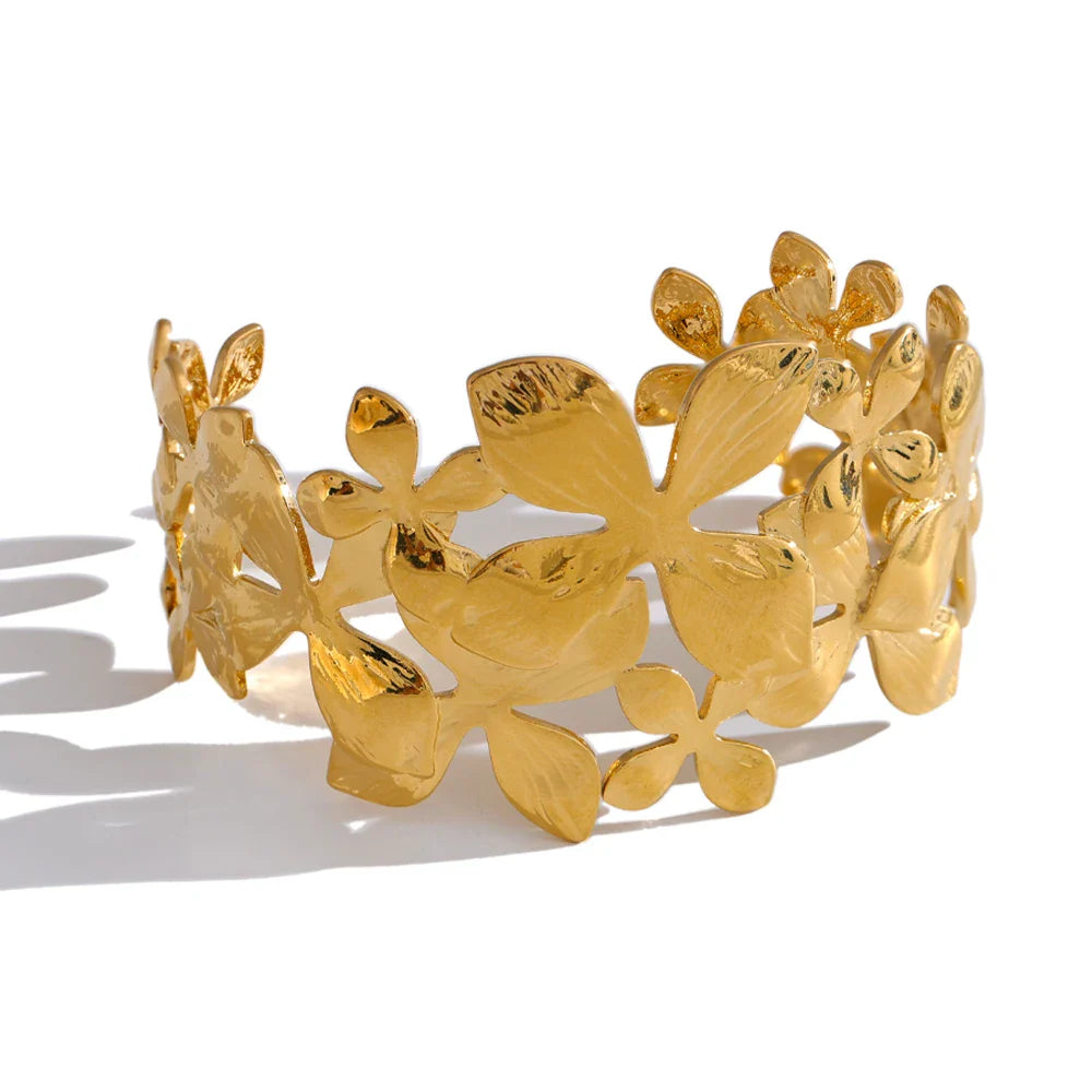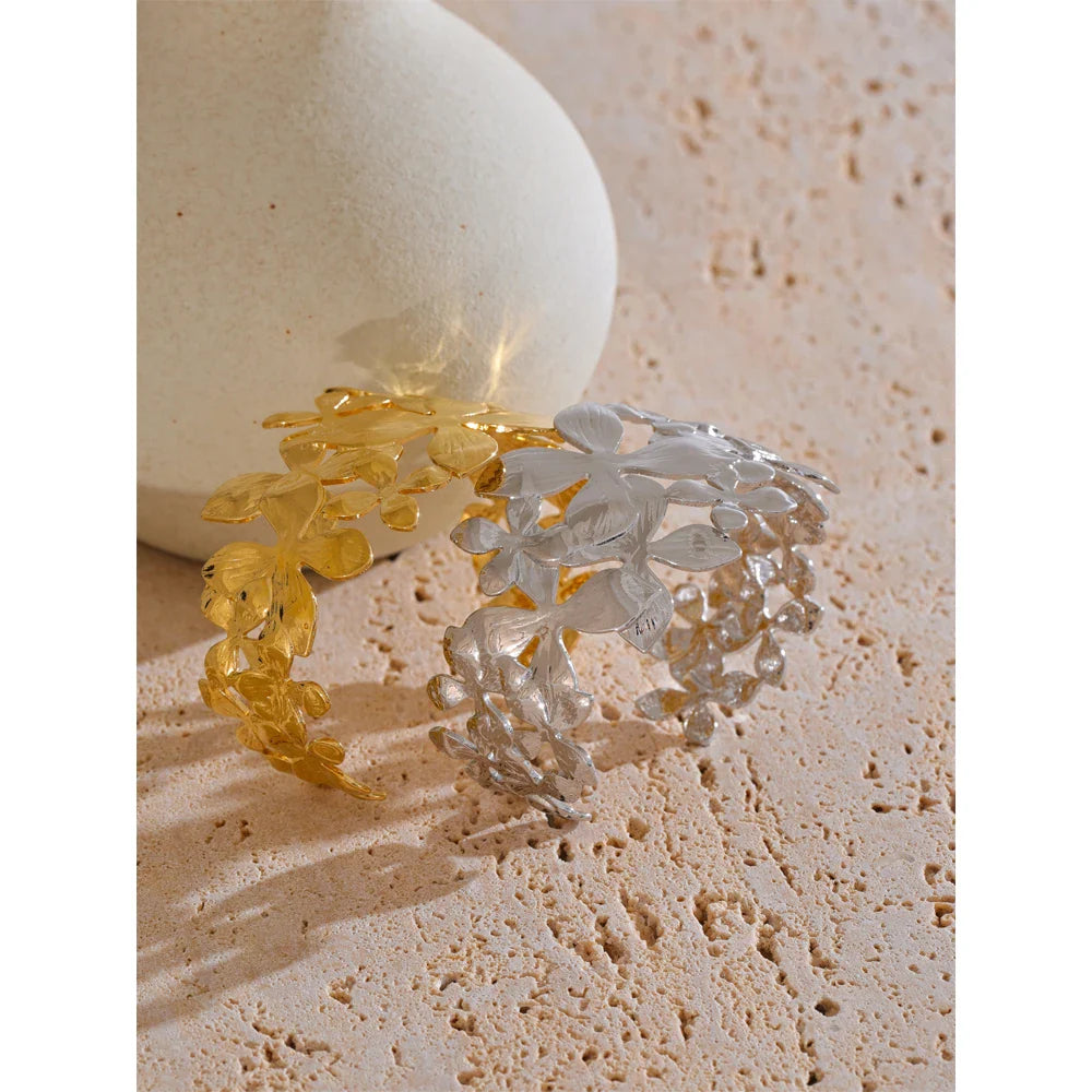 Wesley Floral Cuff Bracelet – Wide Statement Bangle for Women | Huna Jewelry