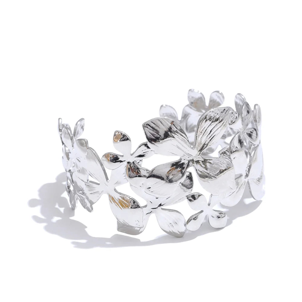 Design: Wide cuff formed by textured mini flowers in varying sizes and overlapping shapes