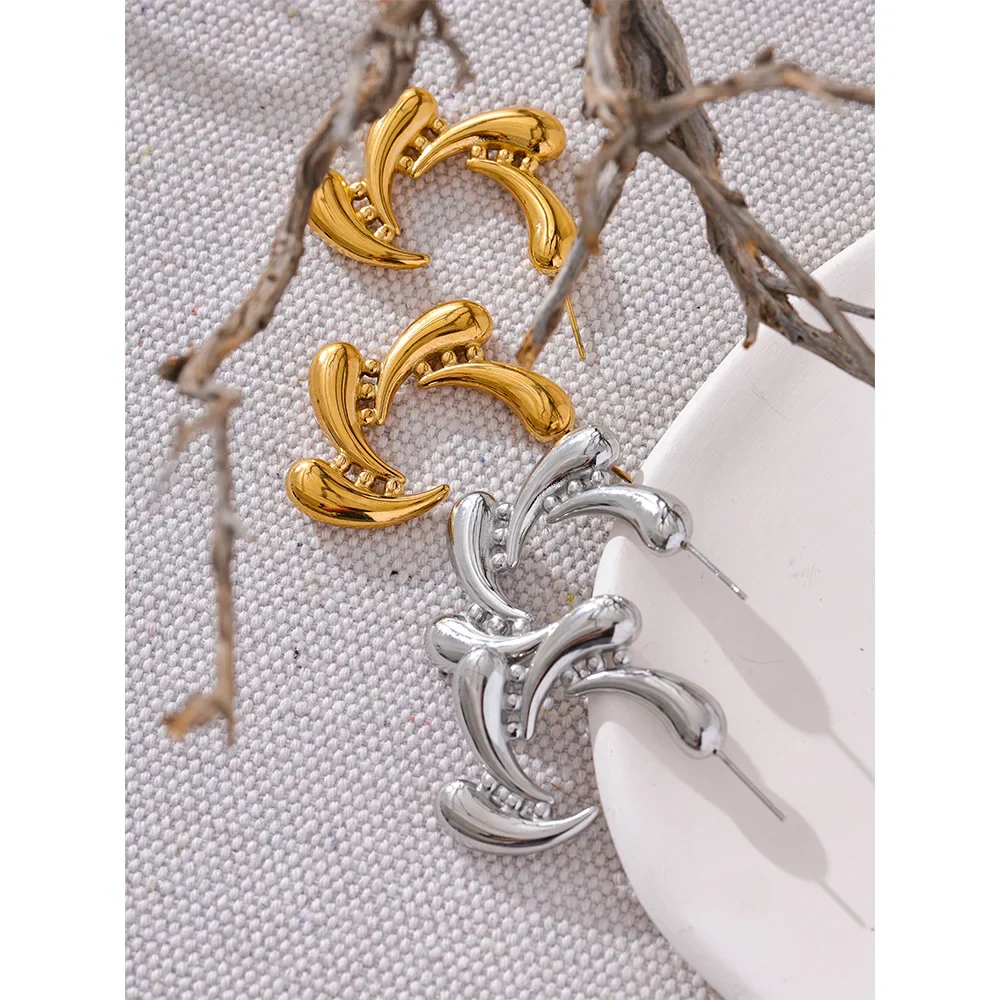 Make a bold and stylish statement with the Fallon Water Splash Huggie Earrings from Huna Jewelry. Designed with a unique water splash-inspired shape, these earrings bring a touch of elegance and creativity to any outfit. Crafted from high-quality stainless steel with PVD gold plating, they are waterproof, tarnish-resistant, and hypoallergenic, making them perfect for everyday wear. Whether you're dressing up for an event or adding a trendy touch to your daily look, these earrings are the perfect blend of modern and chic.