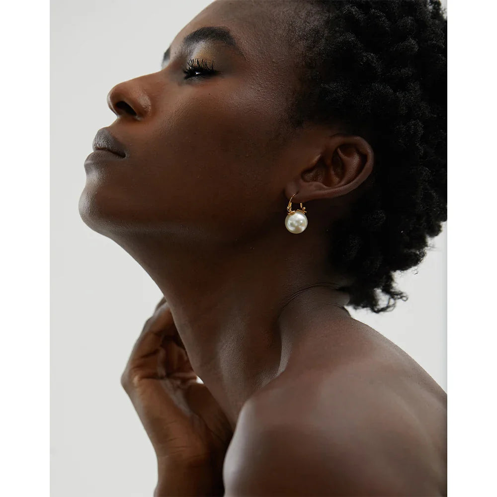 Effortlessly elegant, the Gillian Pearl Hoop Earrings from Huna Jewelry bring a modern twist to a timeless classic. Featuring a petite, hoop-like lock paired with a luminous imitation pearl drop, these earrings are a refined choice for both day and evening wear. Their clean silhouette and polished finish make them a staple accessory with versatile charm.