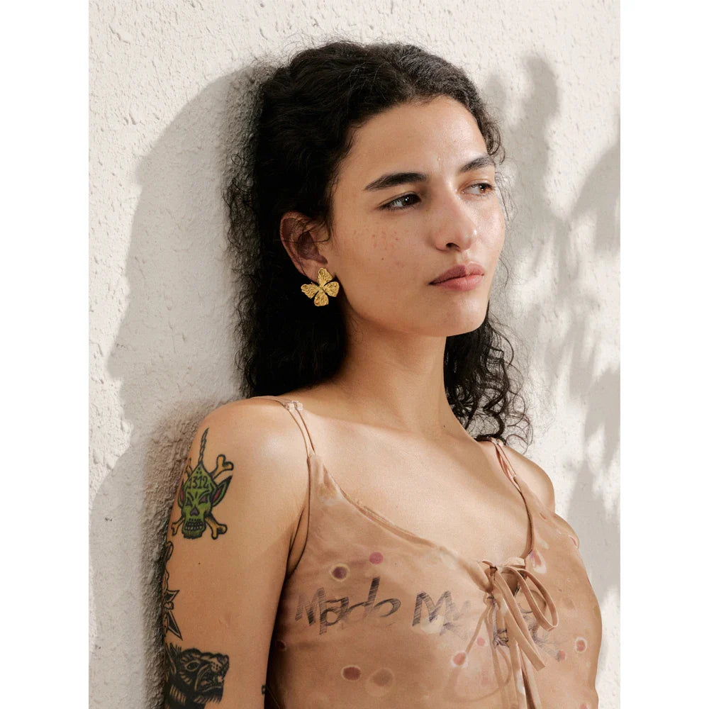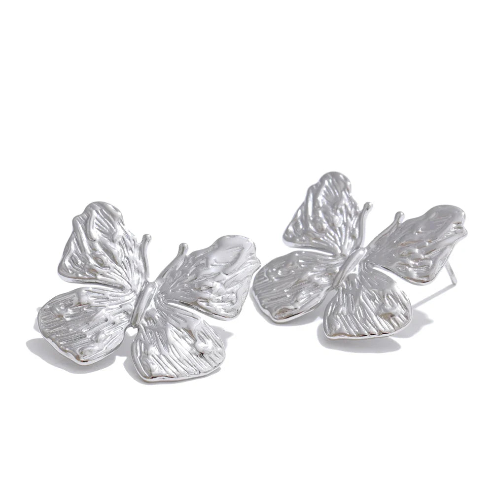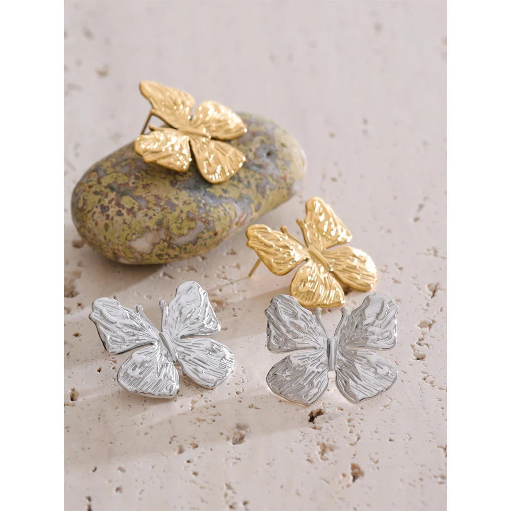 Ivy Butterfly Stud Earrings – Textured & Waterproof Design | Huna Jewelry
