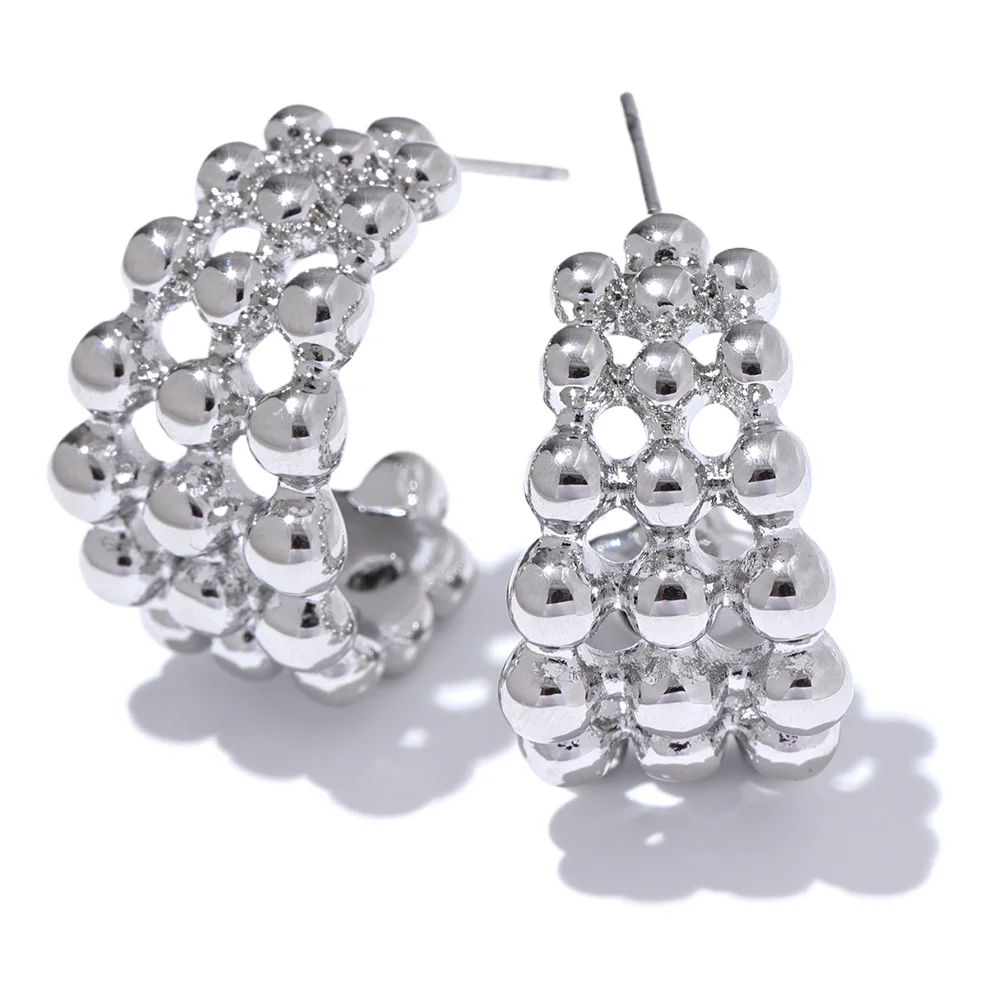 • Design: C-shaped hoops with a layered hollow structure and beaded surface finish