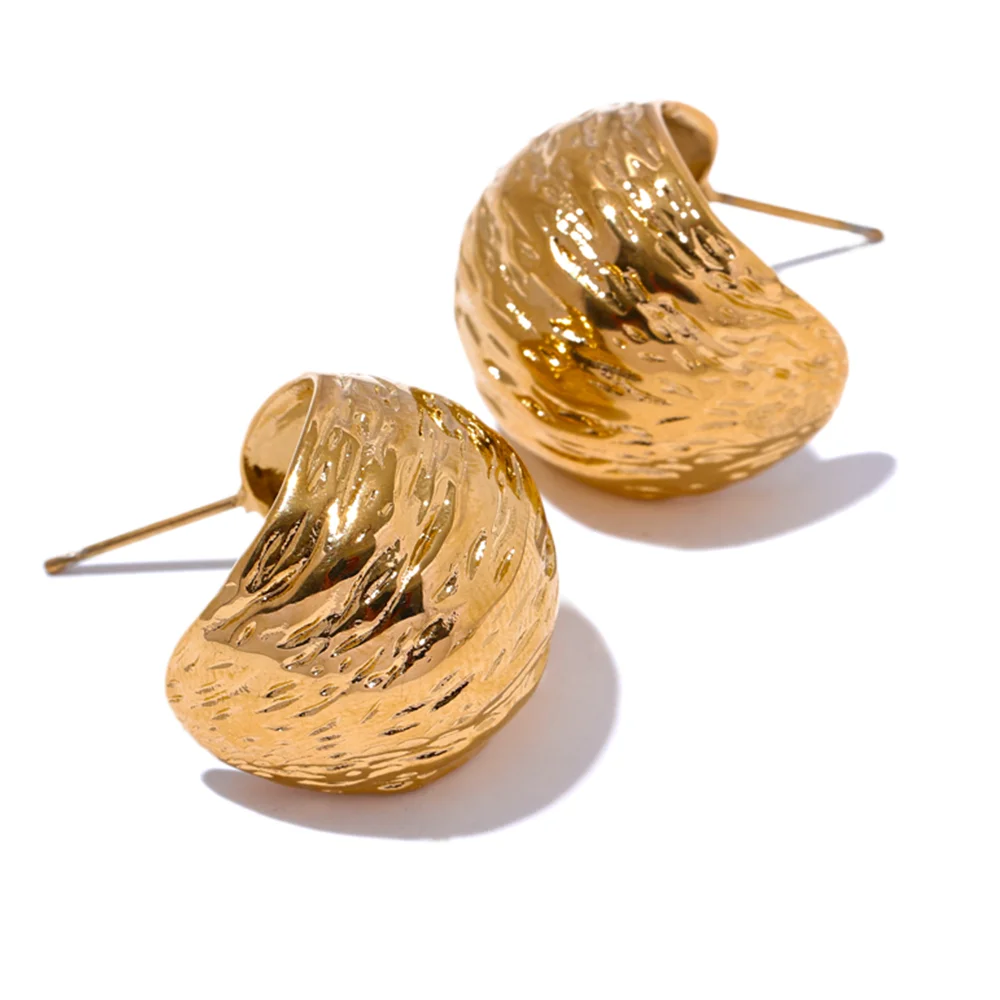 • Design: Wide C-shape huggie earrings with a unique textured finish