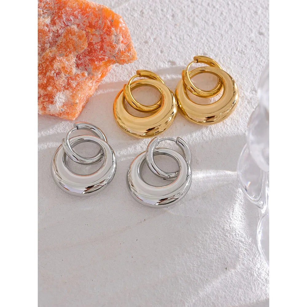 Double Hoop Dangling Earrings – Gold-Plated Statement Jewelry | Huna Jewelry