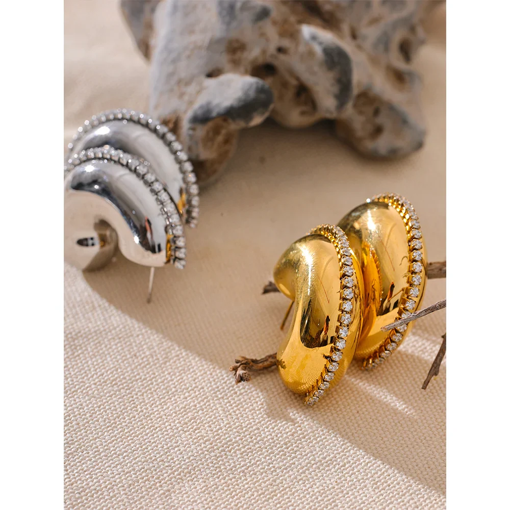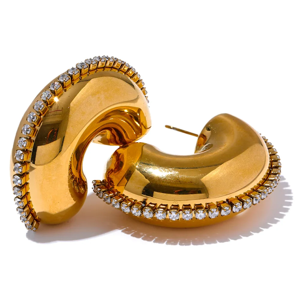 The Huna Jewelry Trendy Cubic Zirconia Earrings bring timeless elegance to your collection. Plated in 18K real gold, these earrings feature dazzling cubic zirconia stones that catch the light beautifully. Their chic and versatile design makes them perfect for elevating any outfit, whether for a formal event or everyday sophistication.