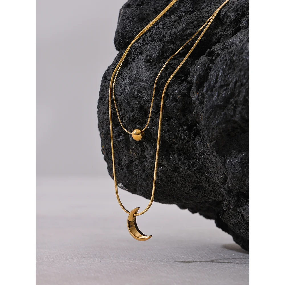 Aria Moon and Bead Pendant Layered Necklace – Trendy Statement Jewelry | Huna Jewelry