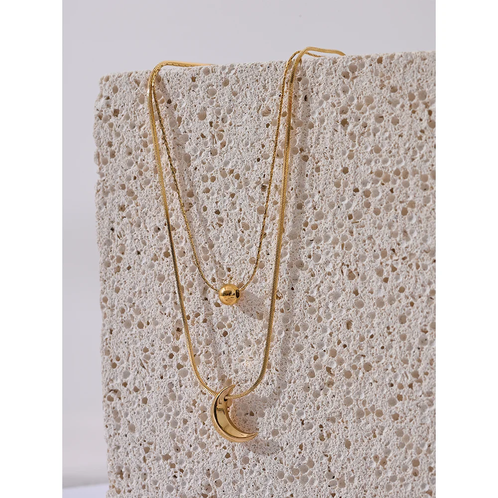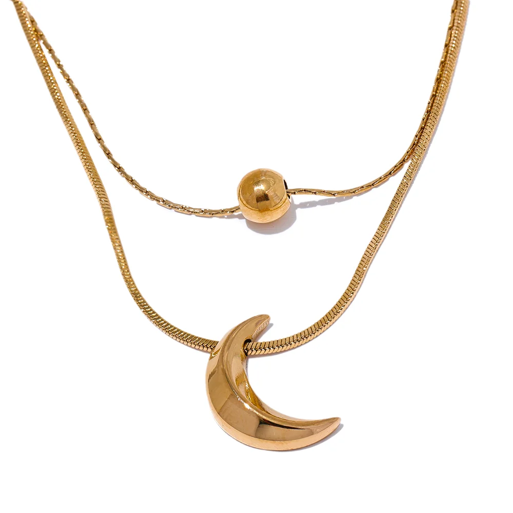 • Design: Layered chain necklace with crescent moon and bead pendants, offering a stylish and celestial-inspired aesthetic.