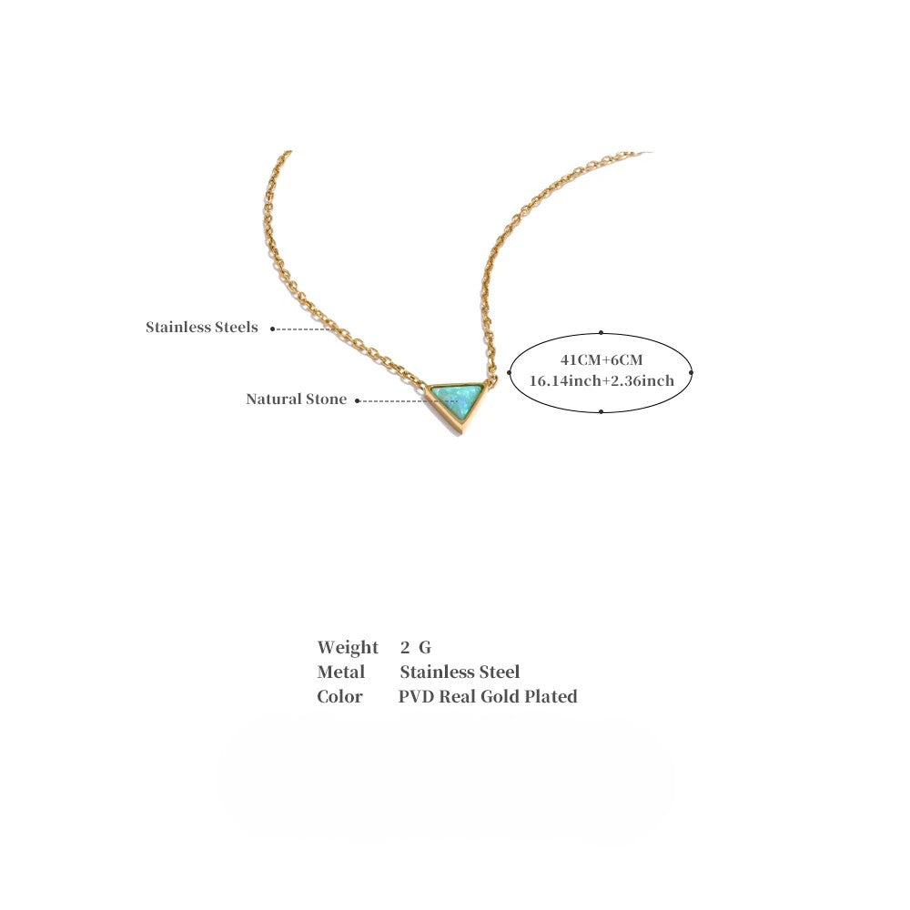 • Design: Dainty inverted triangle pendant with smooth natural stone inlay on a fine chain