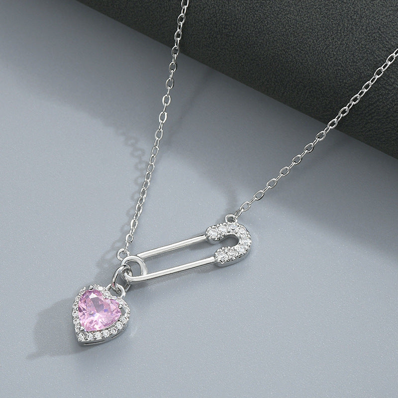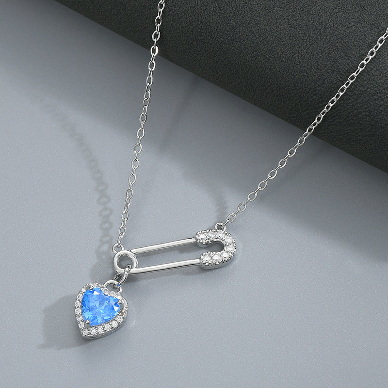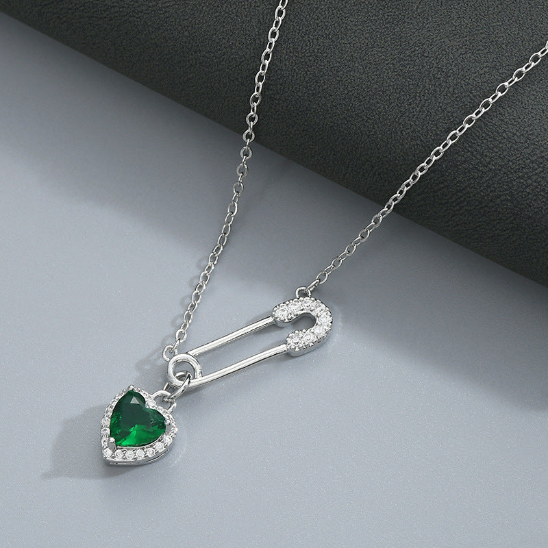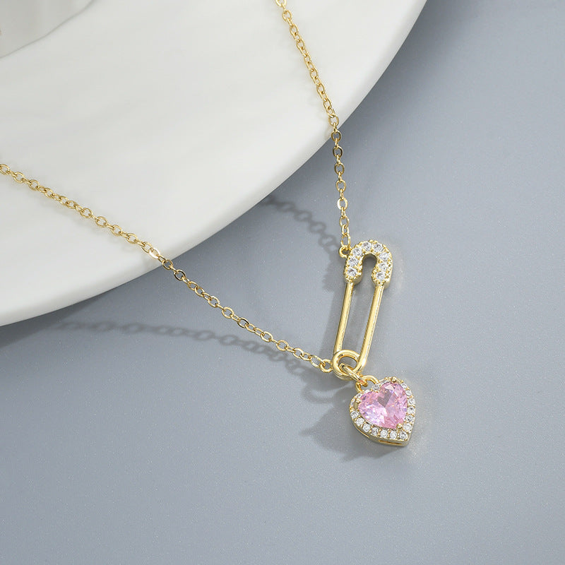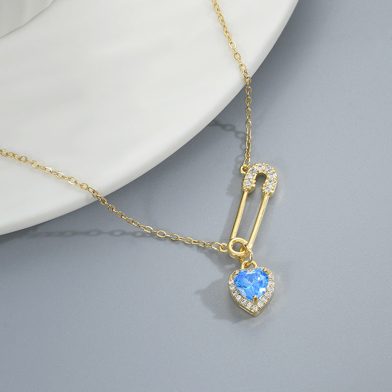 Color Gemstone Heart Safety Pin Necklace – Gold-Plated Pendant | Huna Jewelry