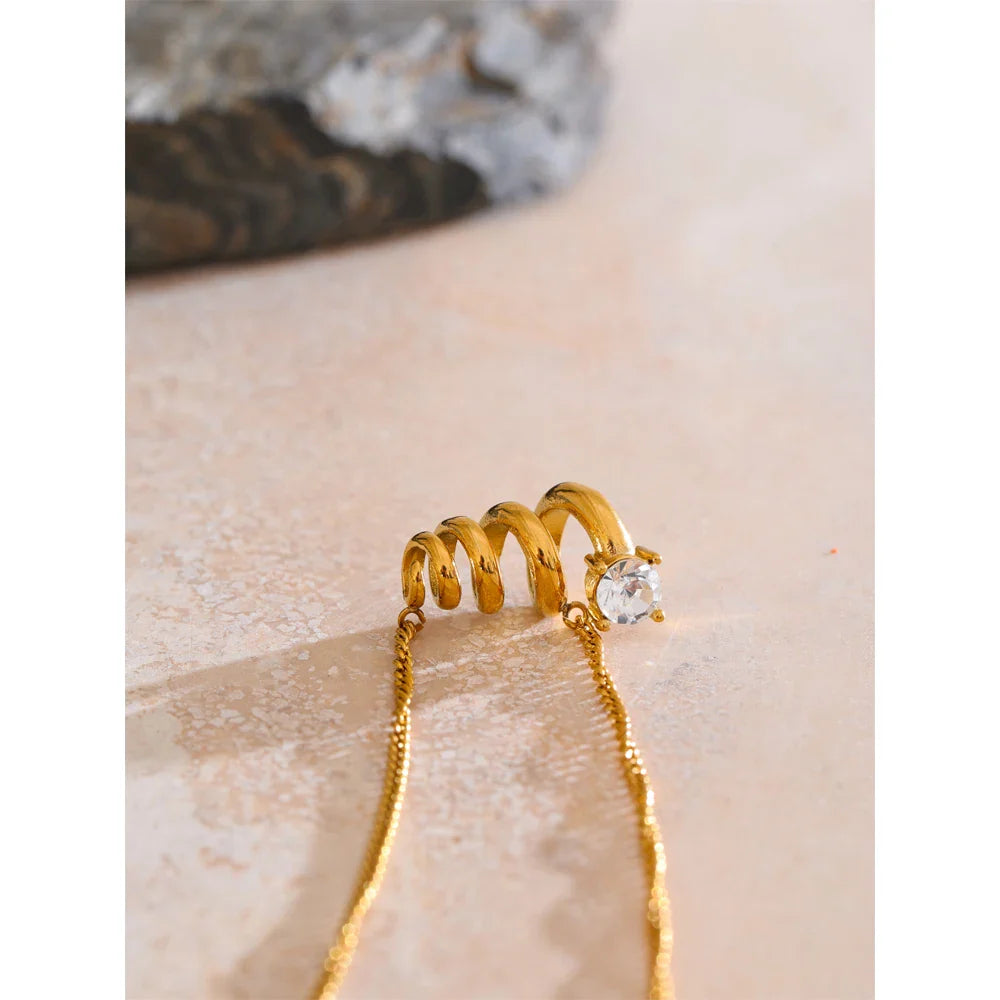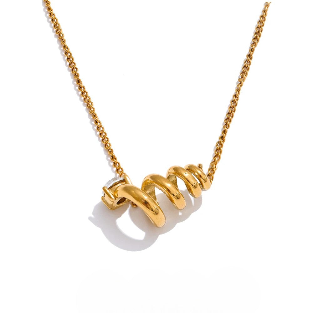 • Design: Hollow spiral pendant with a single clear zirconia stone on a fine chain