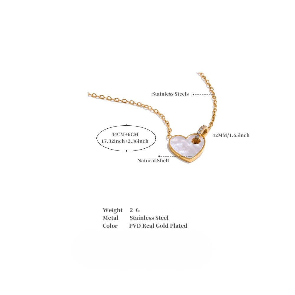 • Design: Dainty heart pendant with shell inlay and zircon-accented D-shaped charm on a fine chain