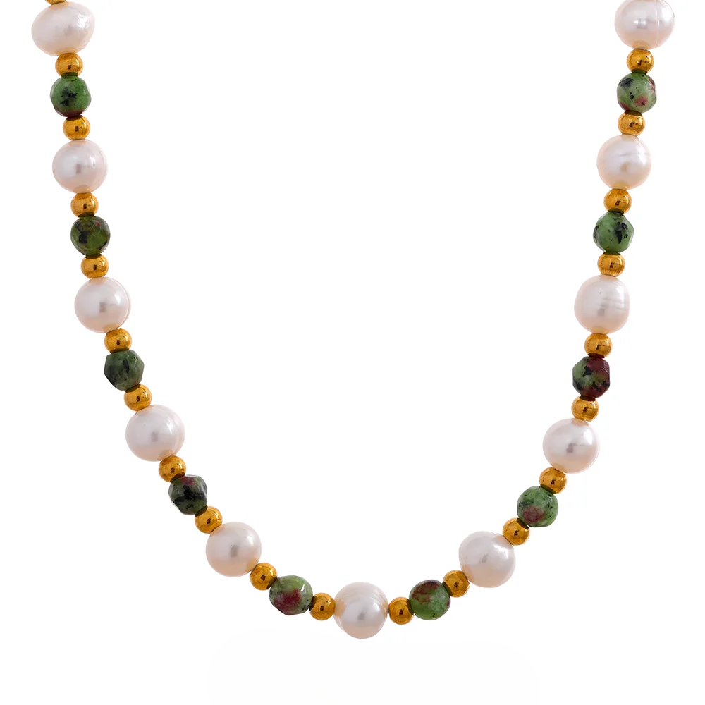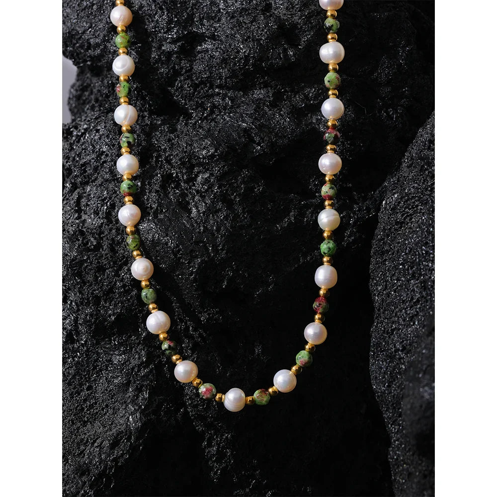 • Materials: Freshwater pearls, natural stone, stainless steel with PVD 18K real gold plating
