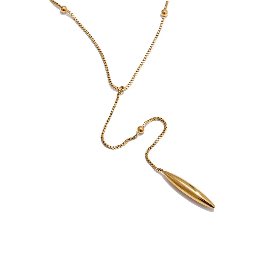 • Design: Thin Y-chain with beaded accents and a sleek drop pendant