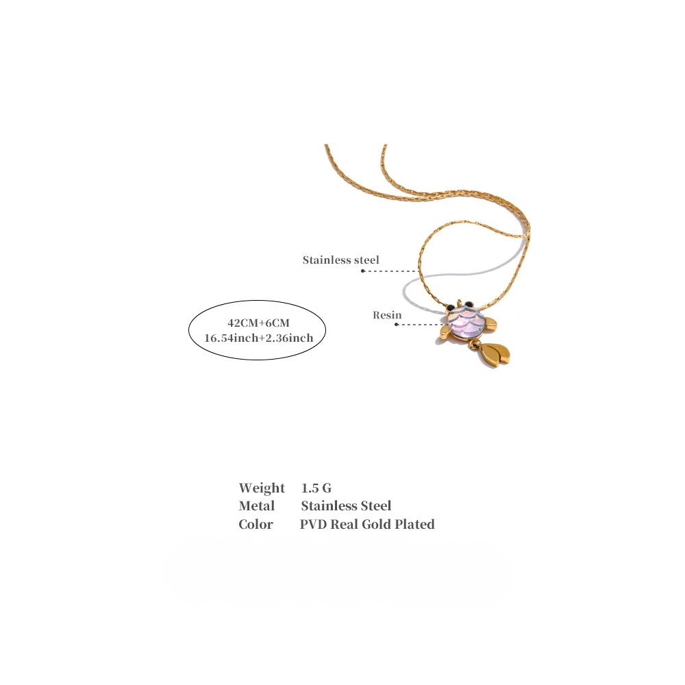 The Myrna Goldfish Pendant Necklace from Huna Jewelry blends whimsical design with elegant materials. This petite pendant features a resin-inlay goldfish body, accented by delicately shaped gold-tone stainless steel fins and tail. Lightweight and eye-catching, it’s the perfect everyday accessory with a unique twist.