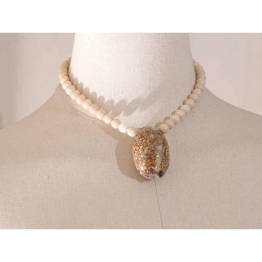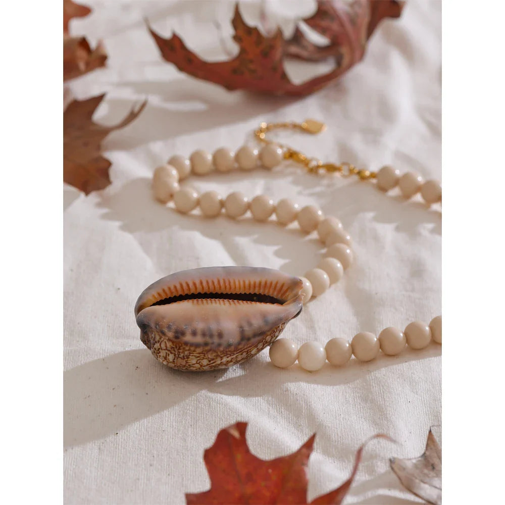 • Design: Beaded fossil-style chain with a bold conch pendant for a natural beach aesthetic