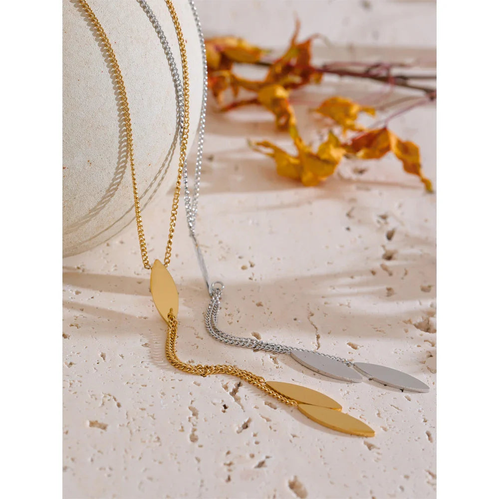 Shannah Leaf Drop Necklace – Long Chain Water-Resistant Jewelry | Huna Jewelry