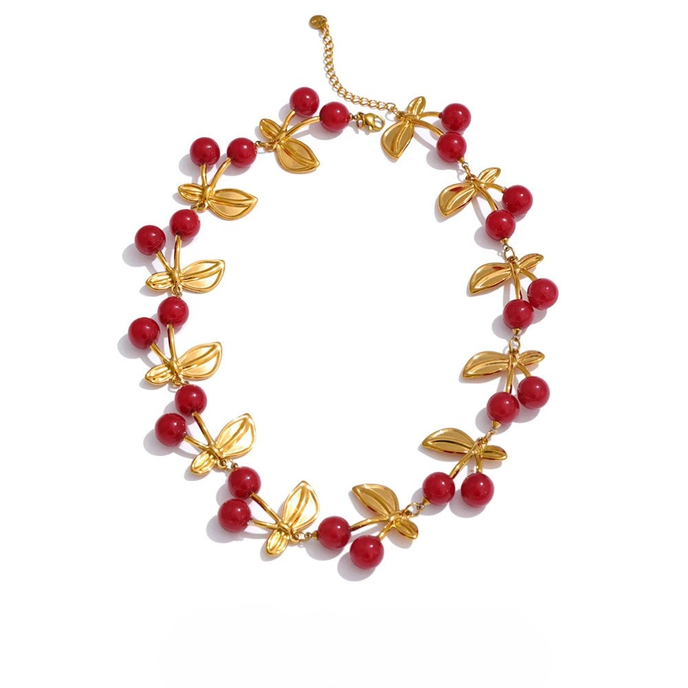• Design: Multiple cherry pendants linked together to form a full necklace chain