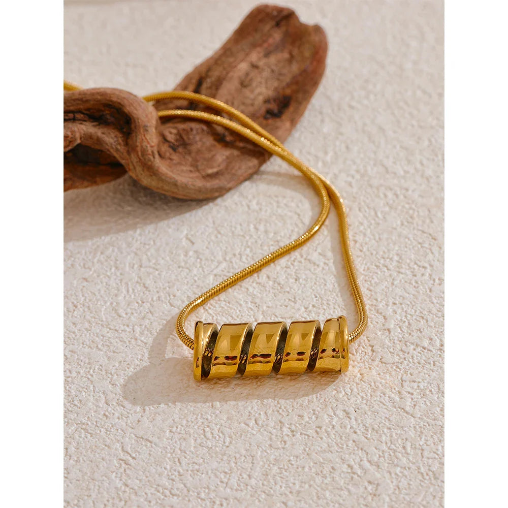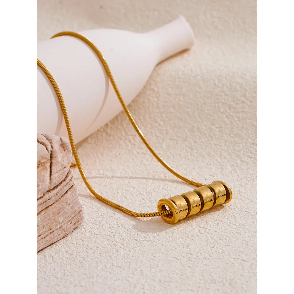 Yvaine Swirl Tube Pendant Necklace – 18K Gold, Water Resistant | Huna Jewelry