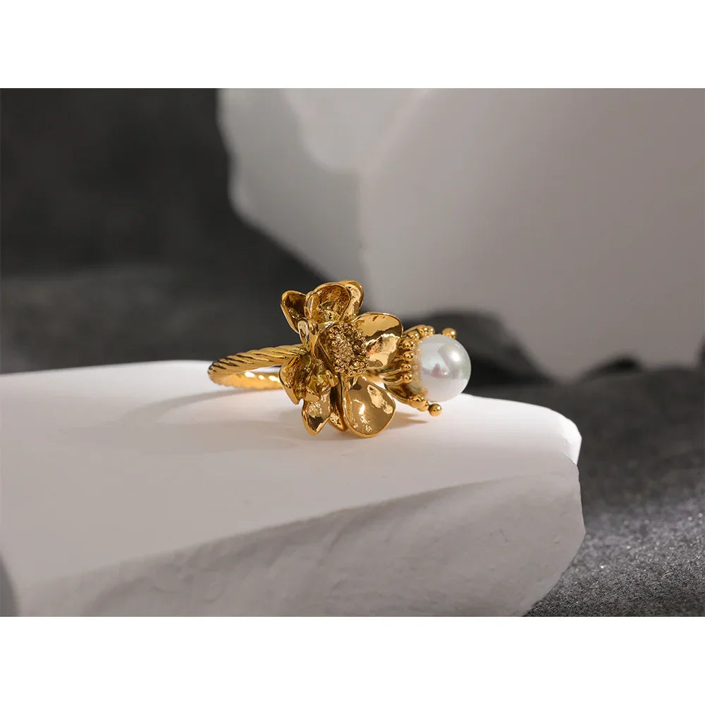 Margaret Pearl gėlės žiedas – elegantiškas ir nesenstantis | Huna Jewelry