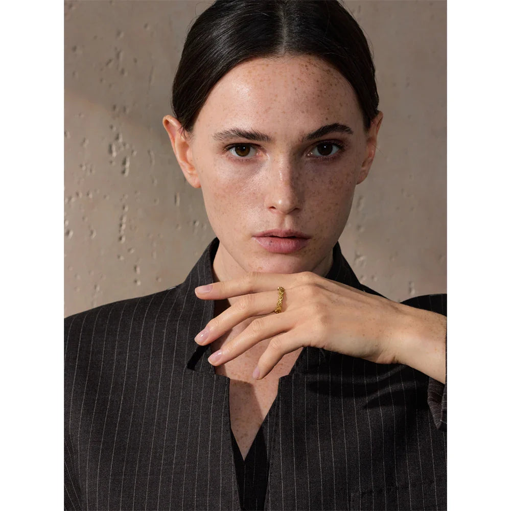 Stilingai žydėkite su „Huna Jewelry“ žiedu „Emery Floral“. Šį poliruotą, paauksuotą žiedą supa nenutrūkstama miniatiūrinių metalinių žiedų linija, sukurianti elegantišką, sodo įkvėptą įvaizdį, puikiai tinkantį tiek kasdienai, tiek ypatingoms progoms. Pagamintas lygios, tvirtos apdailos, jis yra patogus ir suteikia nesenstantį blizgesį, kuris neišbluks. Nesvarbu, ar švenčiate sukaktį, ar tiesiog pagražinate savo aprangą, šis žiedas su gėlėmis suteiks jūsų papuošalų kolekcijai moteriško žavesio ir rafinuotos prabangos.