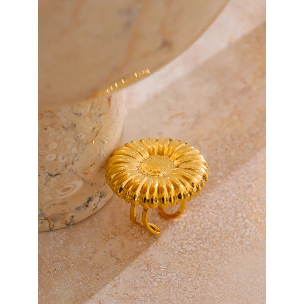 „Flora Chunky“ gėlės formos rankogalių žiedas – drąsus reguliuojamo dydžio papuošalas | „Huna Jewelry“