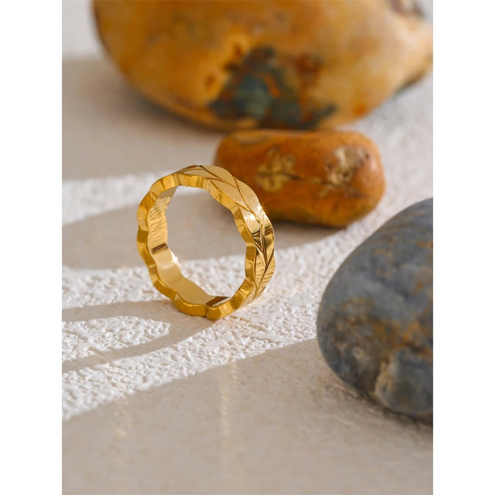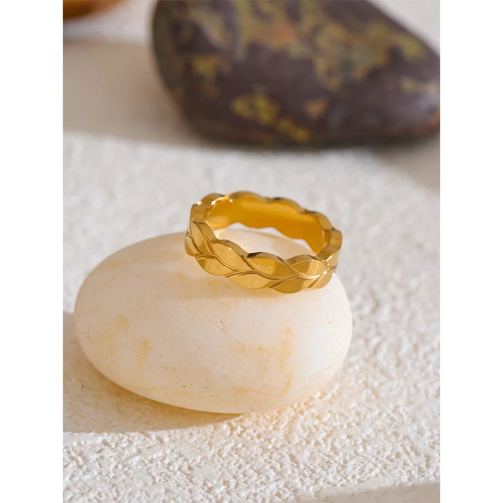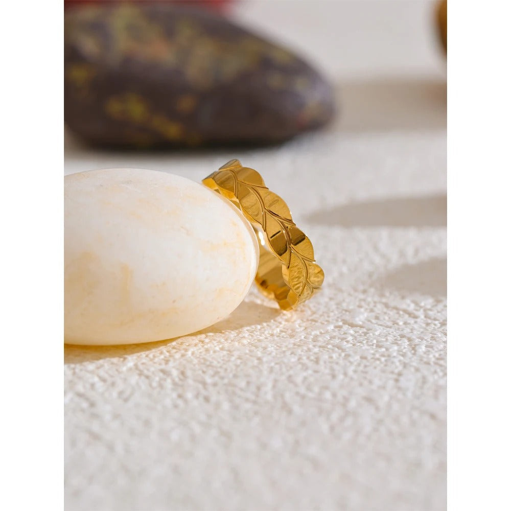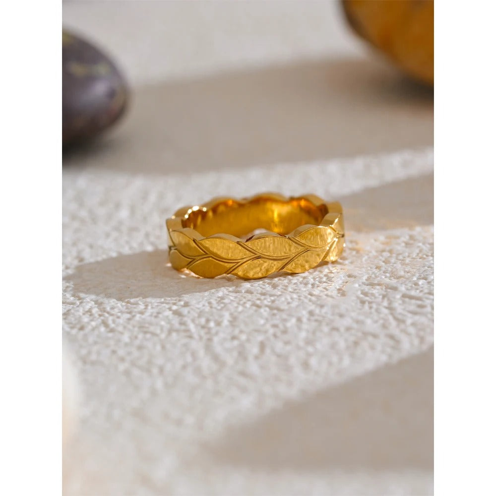 Šalavijų lapų žiedas – poliruotas minimalistinis gamtos įkvėptas papuošalas | „Huna Jewelry“