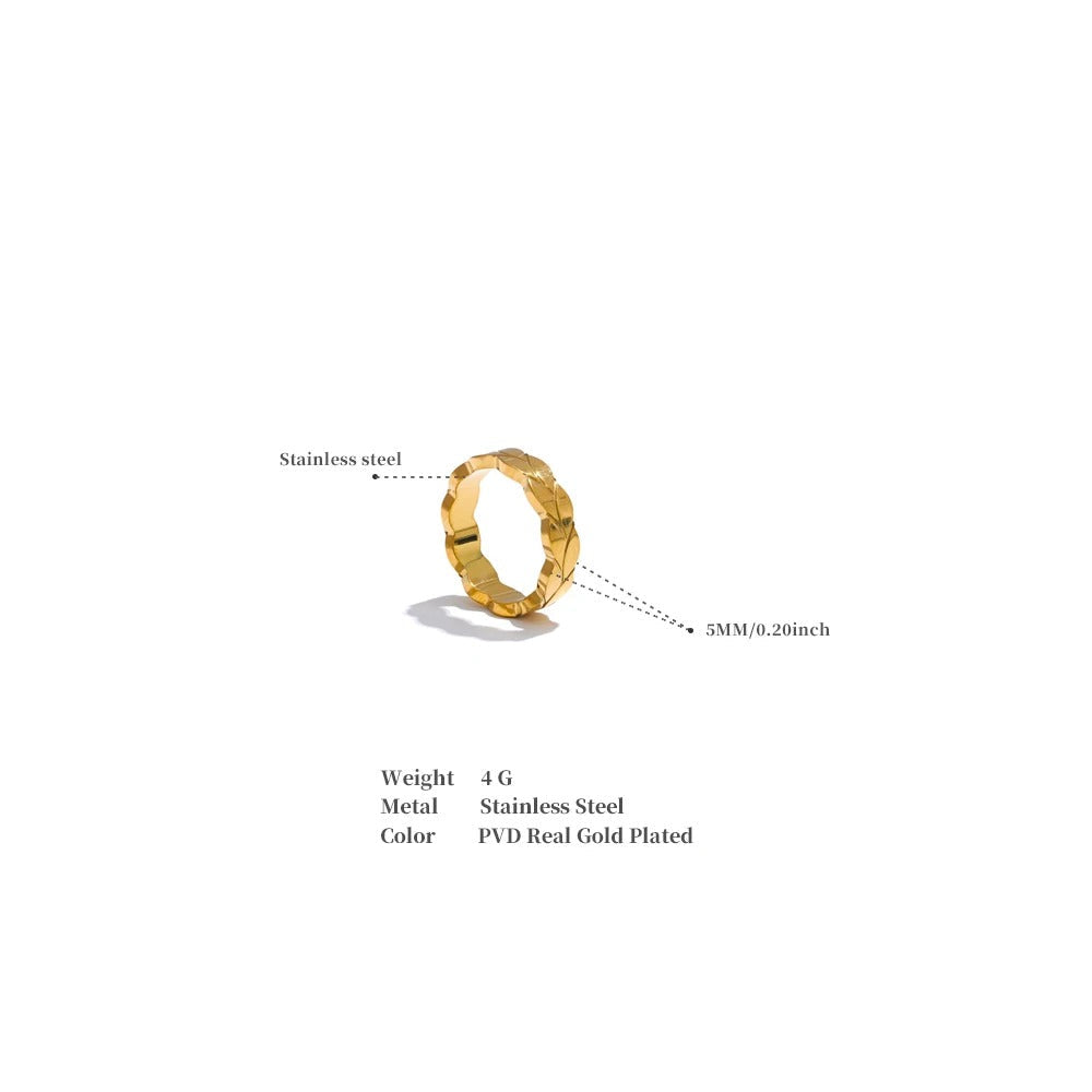 • Dizainas: Lygi, plona juostelė su graviruotais lapais