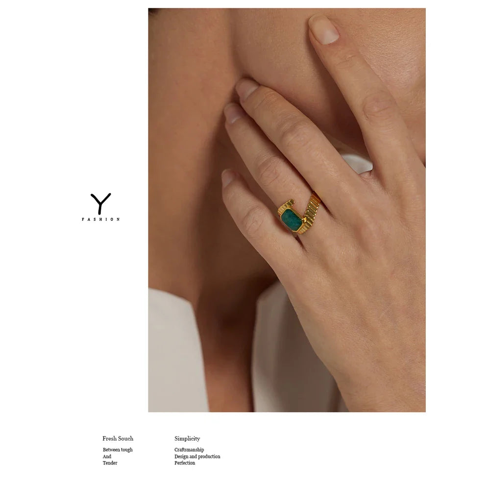 Išreikškite save su „Huna Jewelry“ „Seraphina Blue Apatite“ žiedu – nuostabiu papuošalu, įkūnijančiu eleganciją ir rafinuotumą. Šis drąsus žiedas atvira rankogaliu pasižymi gražiai tekstūruota auksine juostele, kurioje centrinis elementas – didelis, kerintis mėlynas apatito akmuo. Pagamintas iš aukštos kokybės, tikro auksu padengto nerūdijančio plieno, šis vandeniui ir blukimui atsparus žiedas puikiai tinka tiek ypatingoms progoms, tiek kasdienai. Šis nesenstantis dizainas, nesvarbu, ar nešiojamas vienas, ar sudėliotas ant kelių, suteikia prabangos bet kokiai aprangai.
