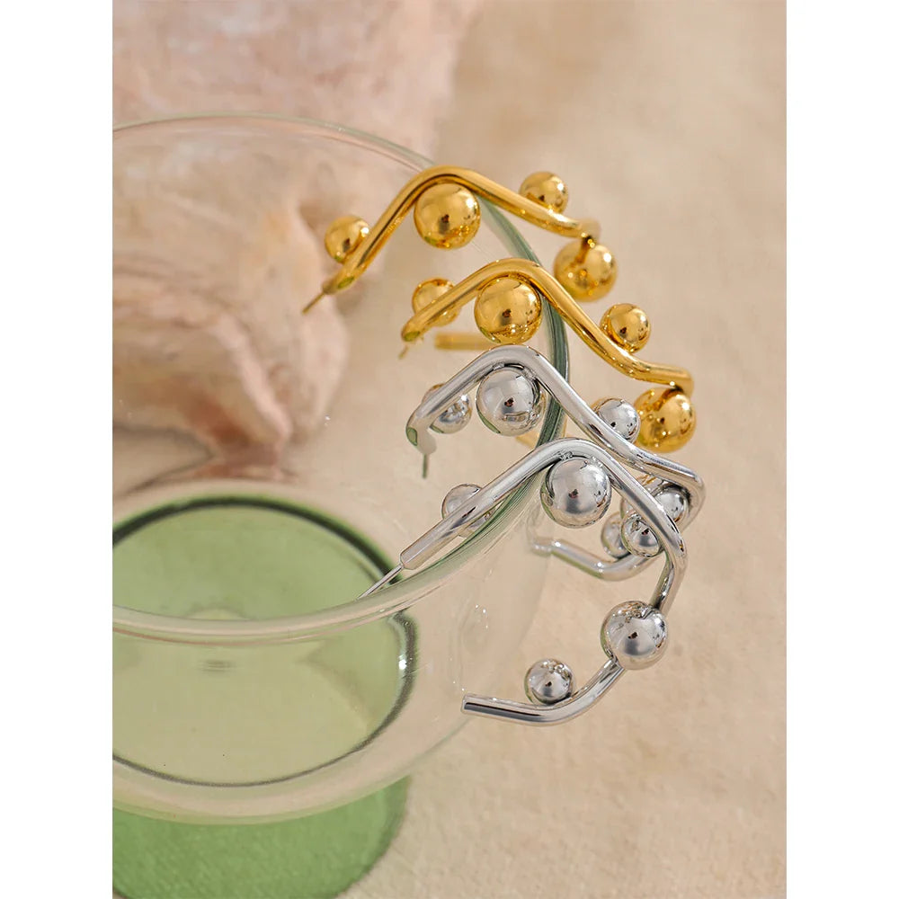 Elevate your everyday style with the Aaliyah Beaded C-Shape Earrings from Huna Jewelry. These unique C-shaped earrings feature delicately placed round beads for a modern yet timeless touch. Made from high-quality stainless steel with 18K PVD gold plating, these earrings are hypoallergenic, tarnish-resistant, and perfect for sensitive ears. Whether you're dressing up for a special event or adding elegance to your daily outfit, these earrings are the ultimate go-to accessory.