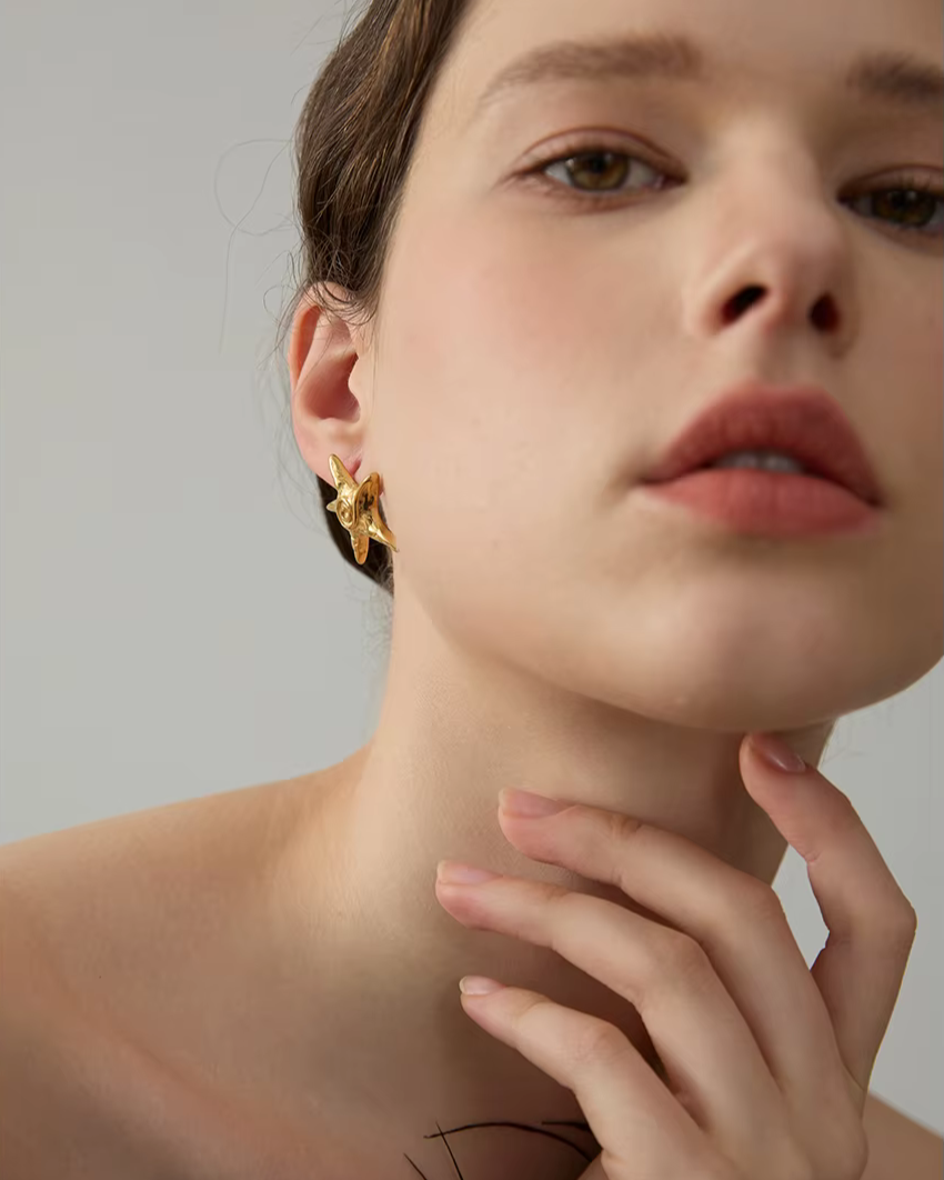 Ameya Starfish Stud Earrings – Stylish 18K Gold Textured Jewelry | Huna Jewelry