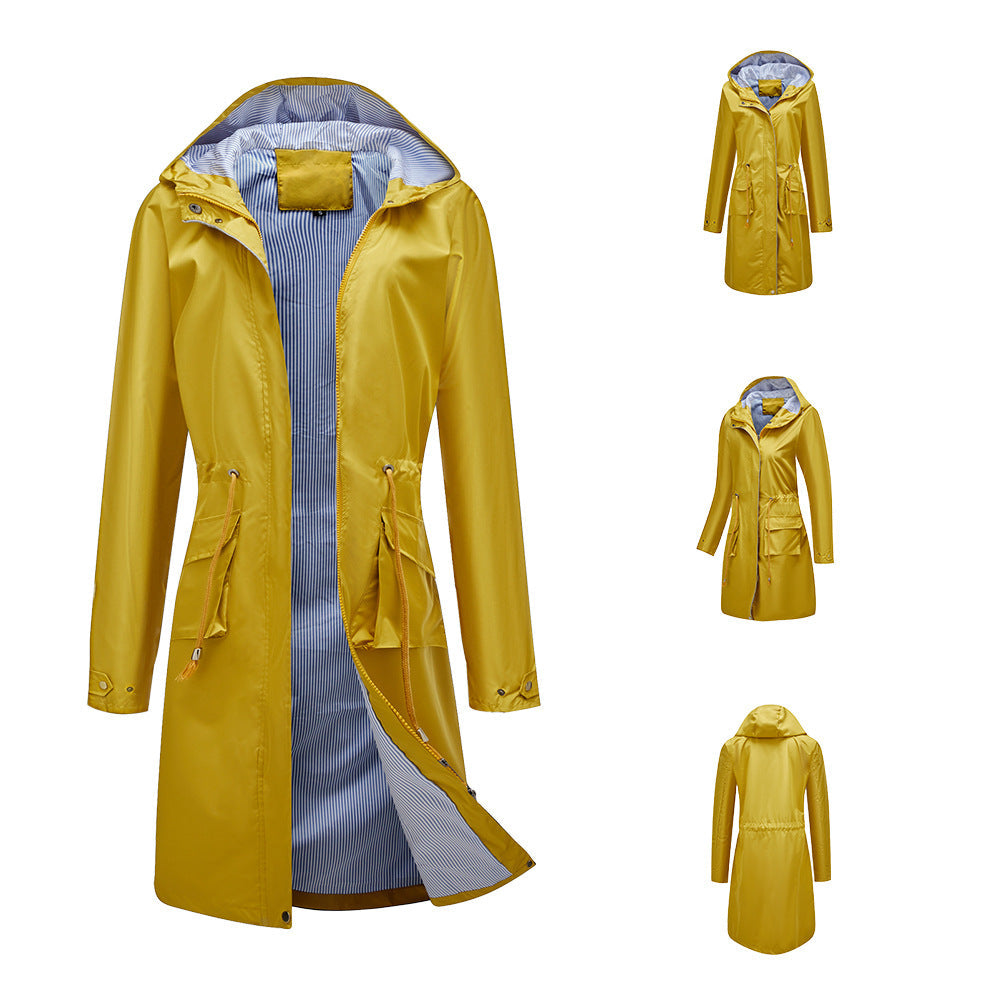 Eleganten ženski dolg plašč s kapuco - popoln za deževne dni in elegantne obleke, topel in vsestranski vrhnji plašč