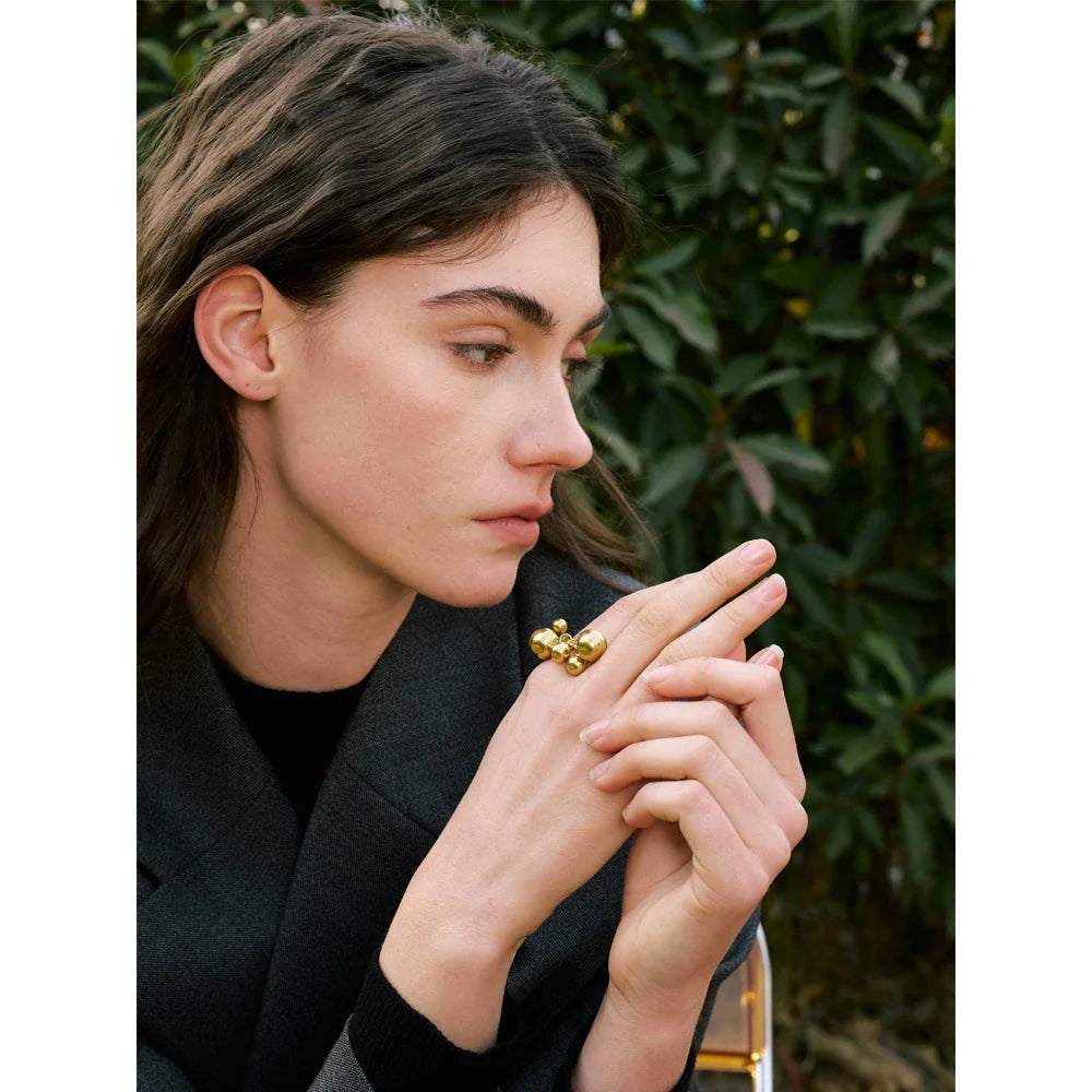 Dodajte svoji zbirki nakita kanček igrive elegance s prstanom Tabitha Beaded Ring znamke Huna Jewelry. Ta elegantni prstan, oblikovan z nežnimi, združenimi gibljivimi perlicami različnih velikosti, ponuja edinstven in sodoben čar. Izdelan je iz visokokakovostnega nerjavečega jekla z 18-karatnim PVD zlatom, je odporen proti oksidaciji, vodoodporen in popoln za vsakodnevno nošenje. Ne glede na to, ali ga nosite samostojno za minimalističen videz ali pa ga kombinirate za dodaten učinek, je ta trendovski prstan nepogrešljiv modni dodatek.